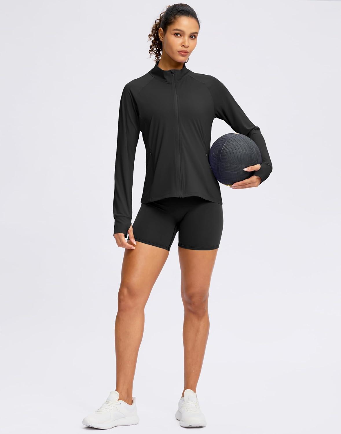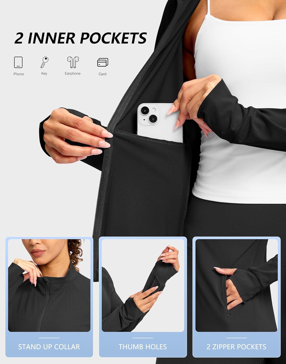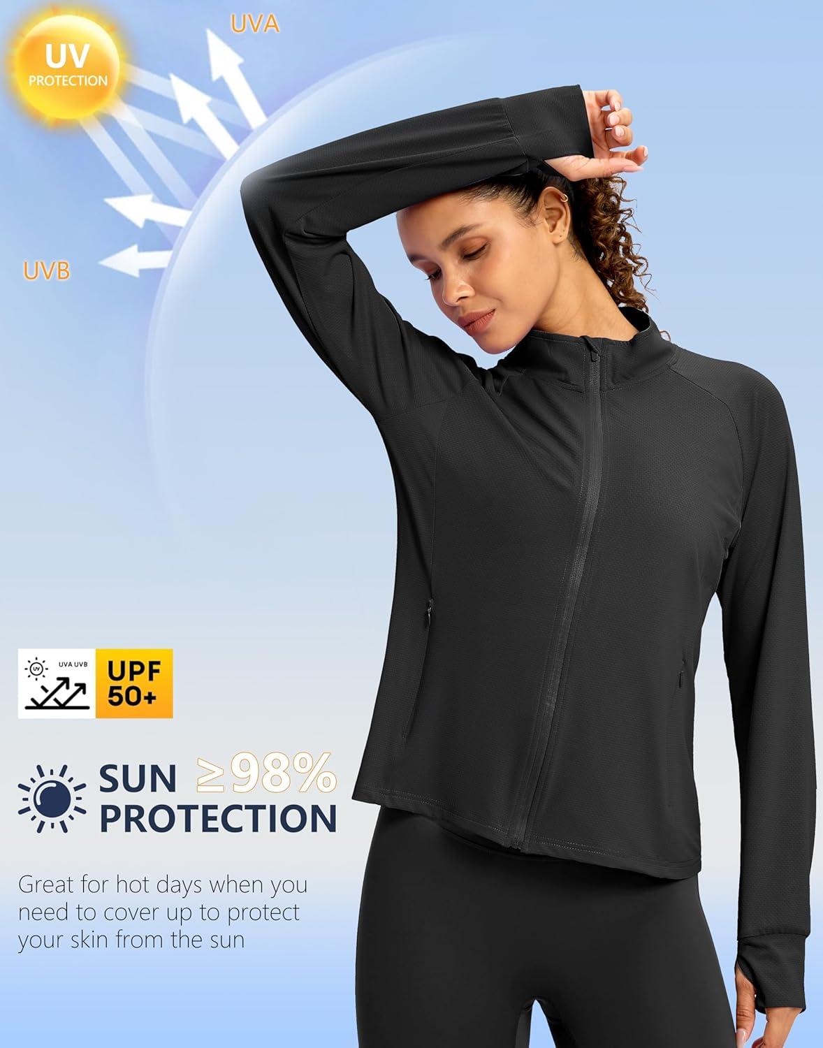 G Gradual Women's Lightweight Athletic Jacket Sun Protection UPF 50+ Zip Up 4 Pockets Long Sleeve Shirts Workout Running(Black)