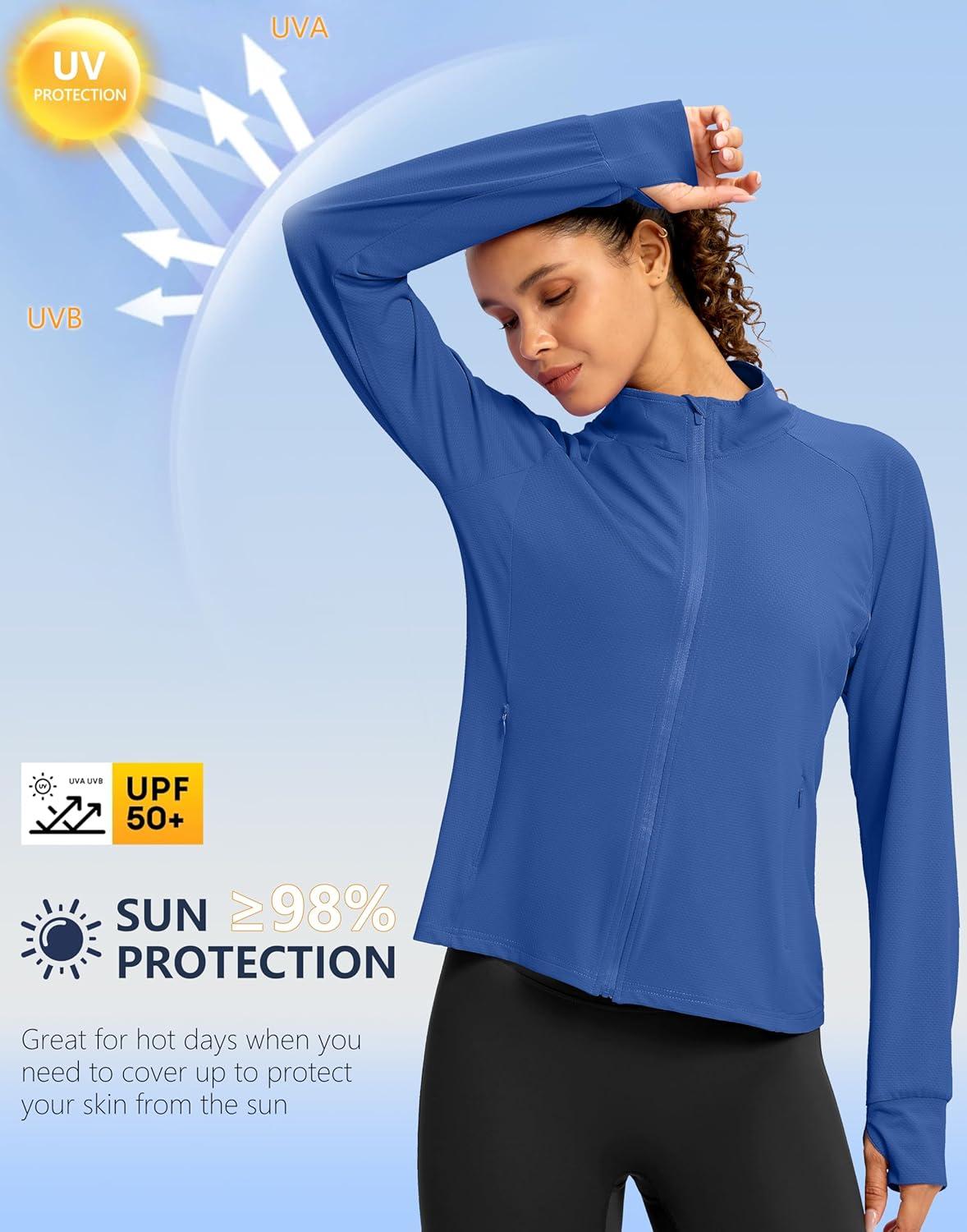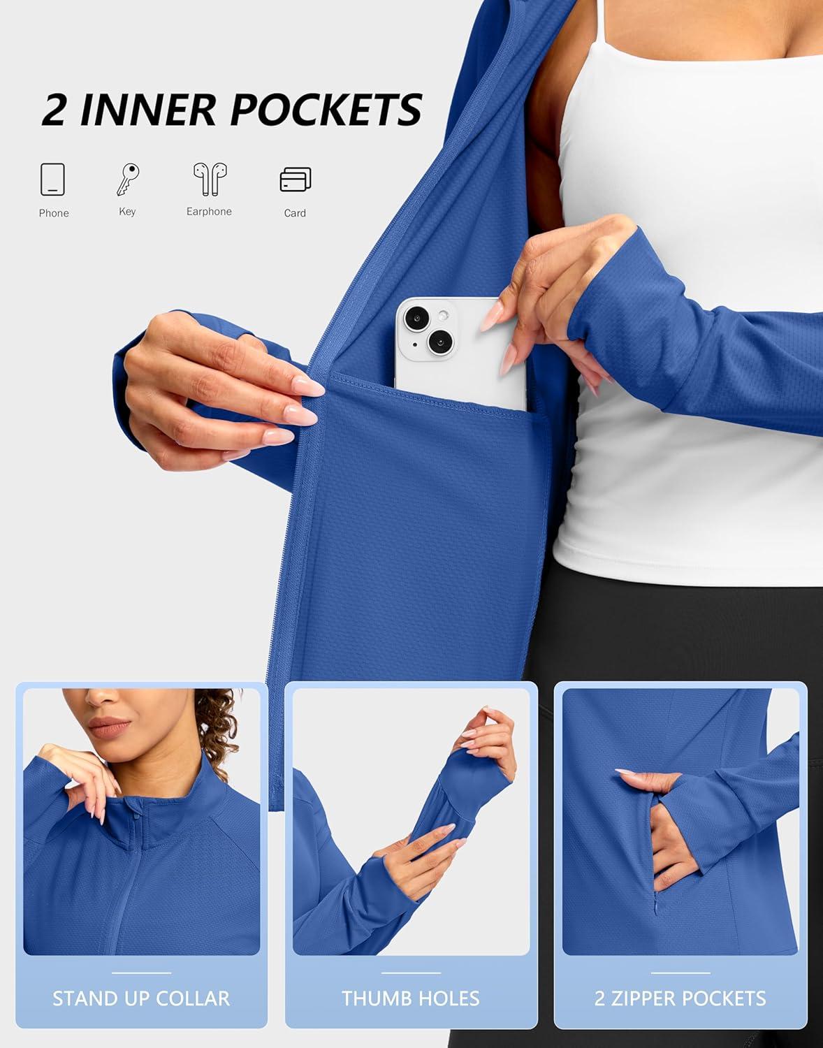 G Gradual Women’s Lightweight Athletic Jacket Sun Protection UPF 50+ Zip Up 4 Pockets Long Sleeve Shirts Workout Running(Dark Blue)