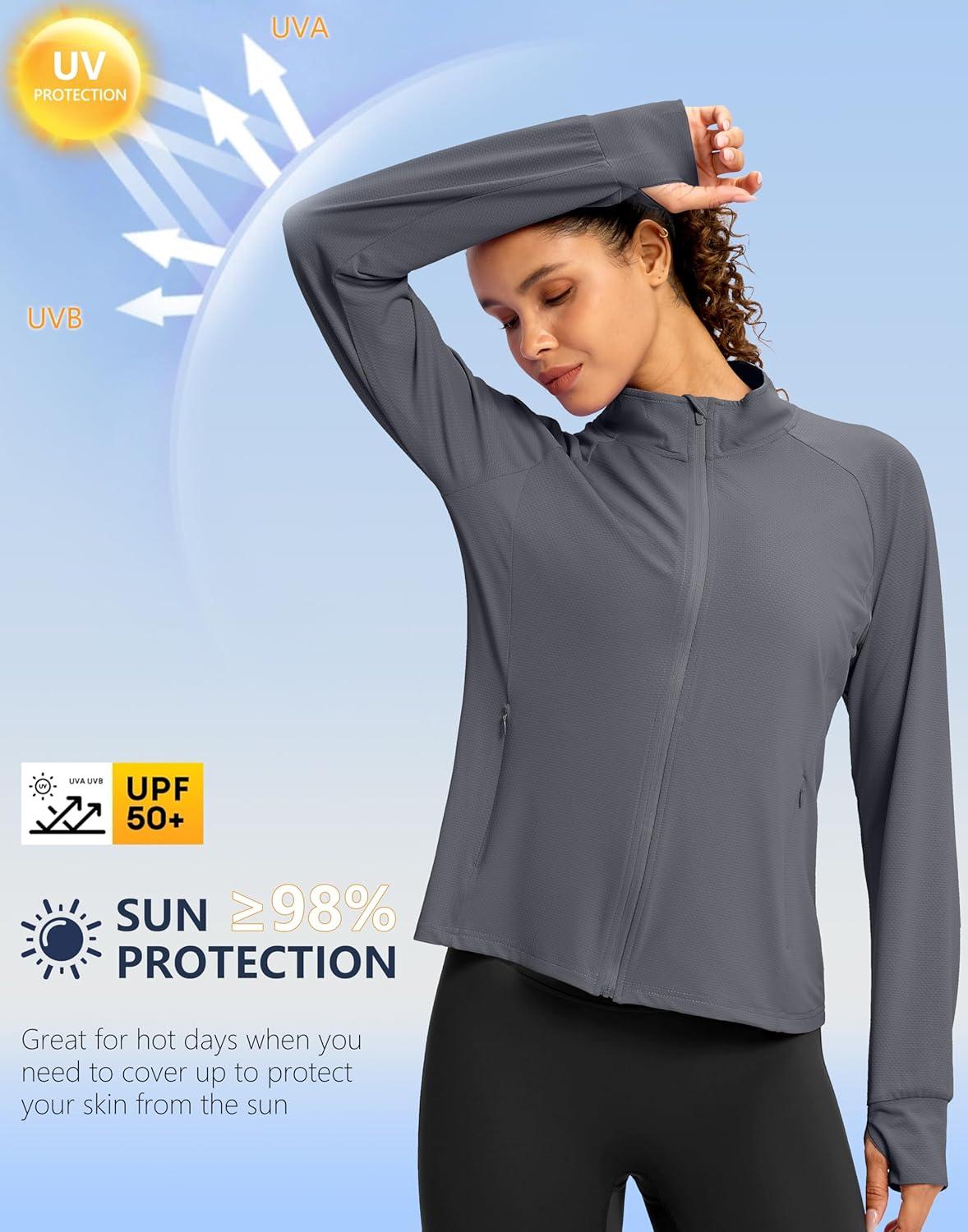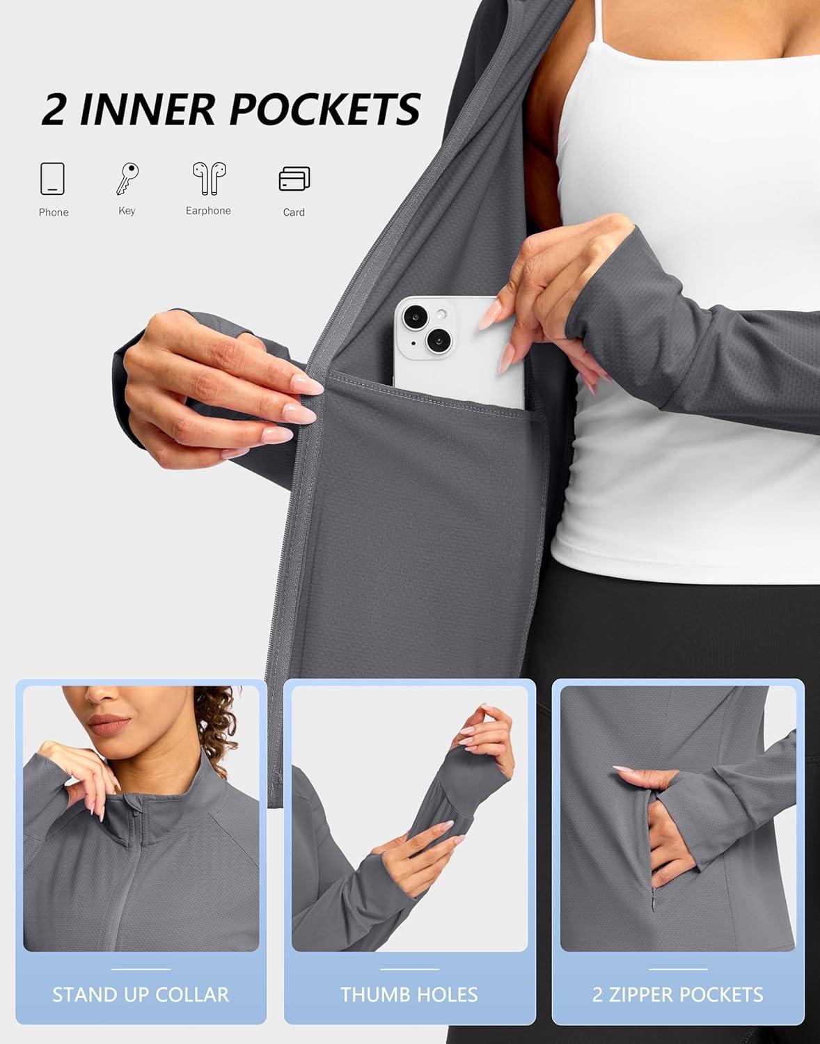 G Gradual Women's Lightweight Athletic Jacket Sun Protection UPF 50+ Zip Up 4 Pockets Long Sleeve Shirts Workout Running(Dark Grey)