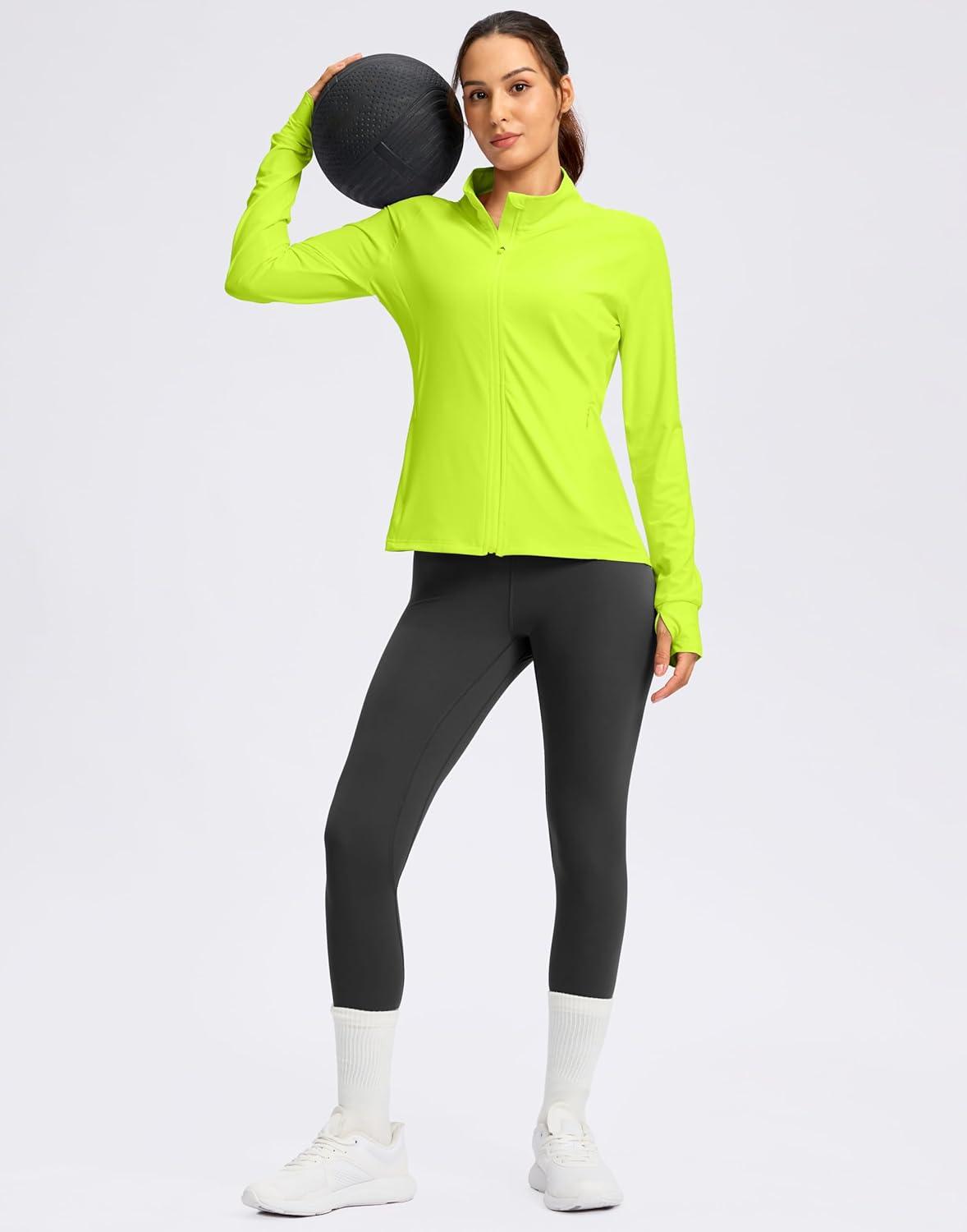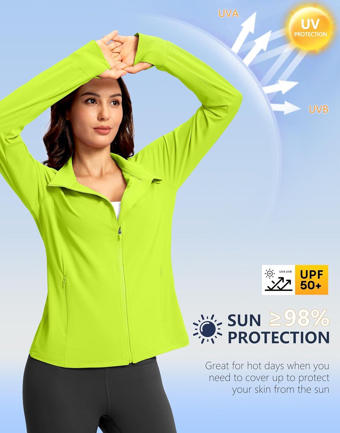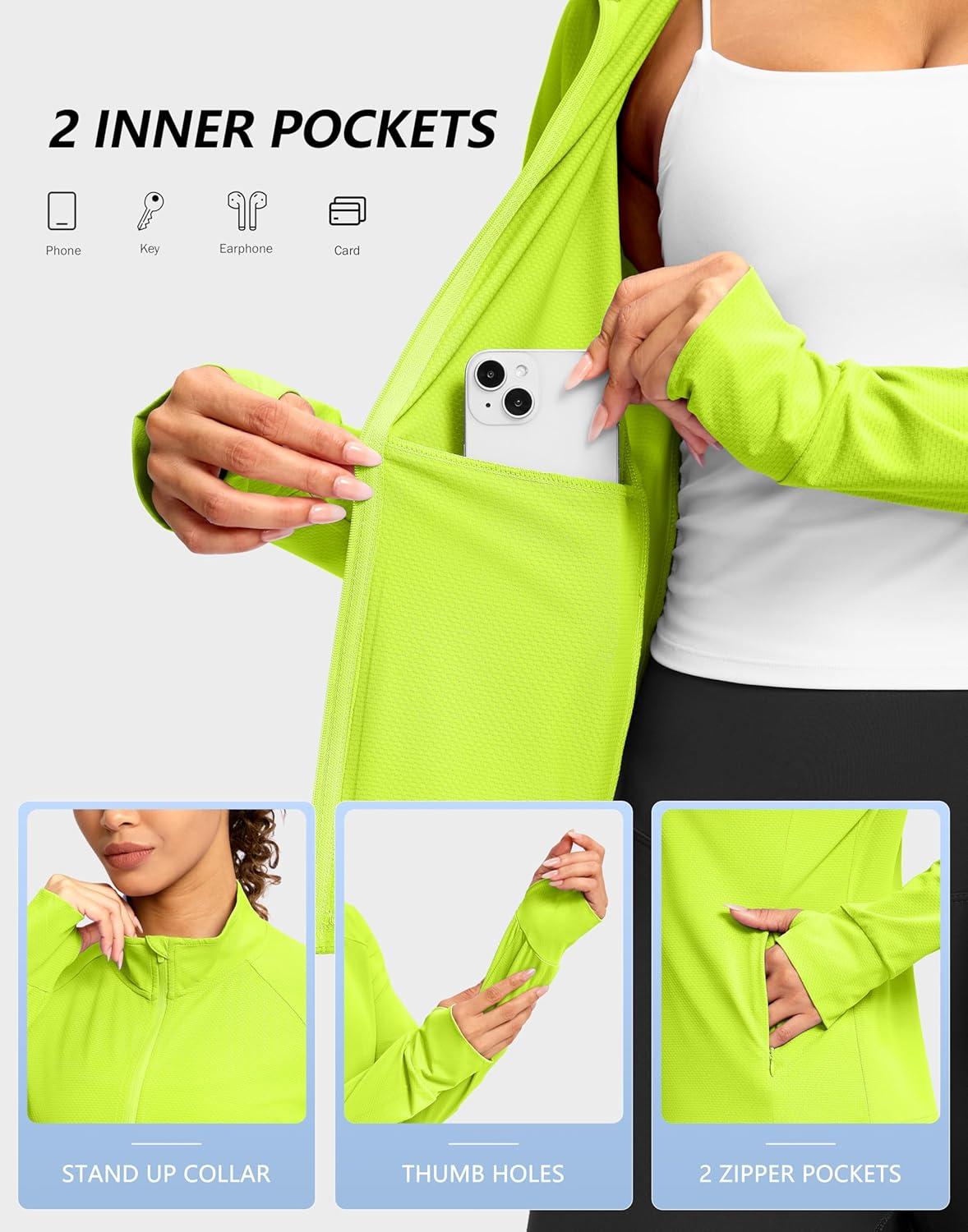 G Gradual Women's Lightweight Athletic Jacket Sun Protection UPF 50+ Zip Up 4 Pockets Long Sleeve Shirts Workout Running(Neon Green)