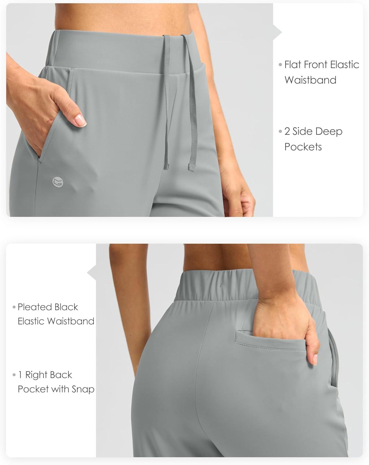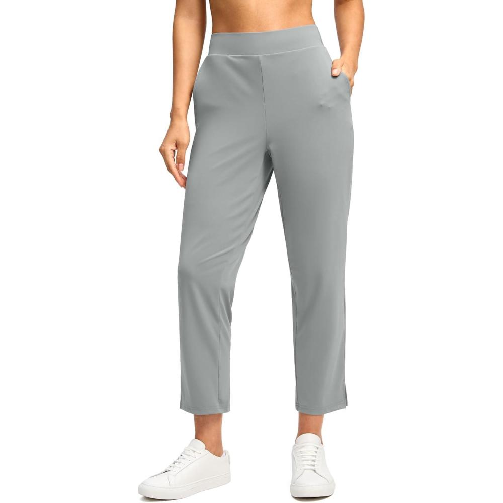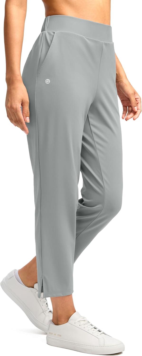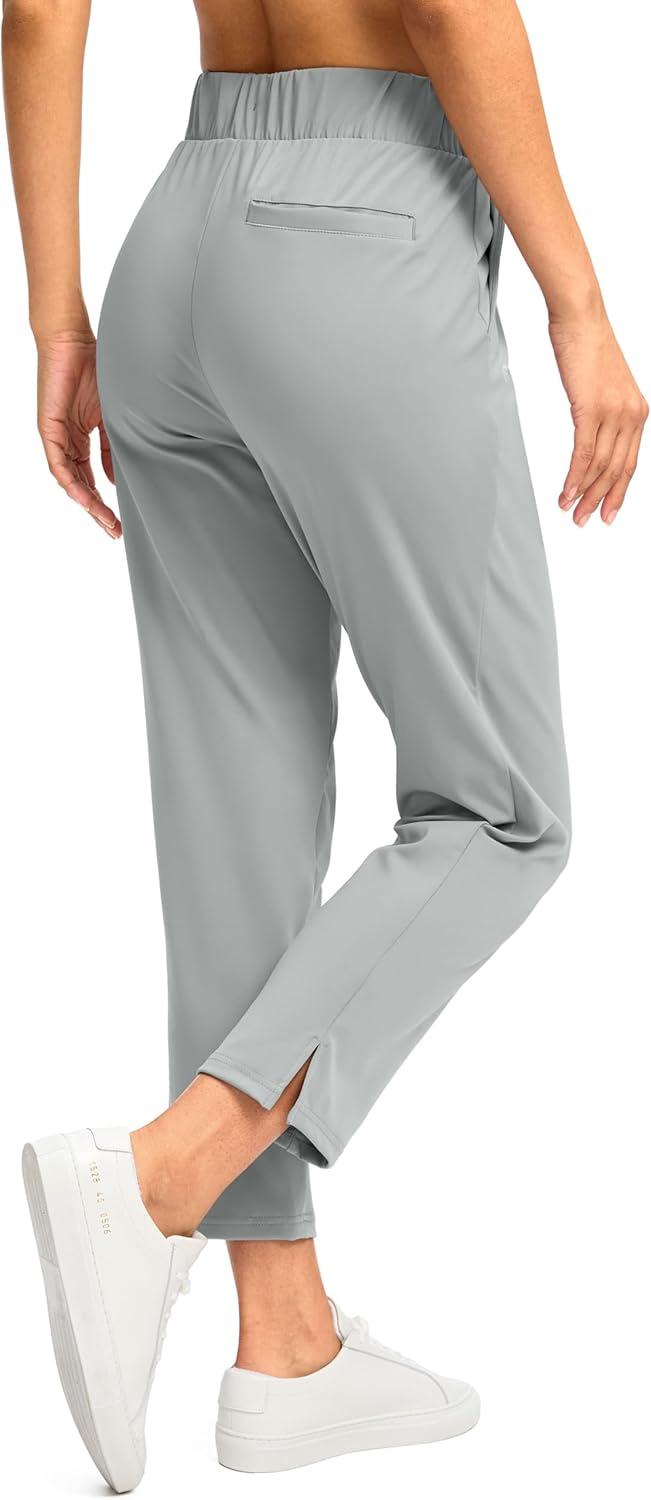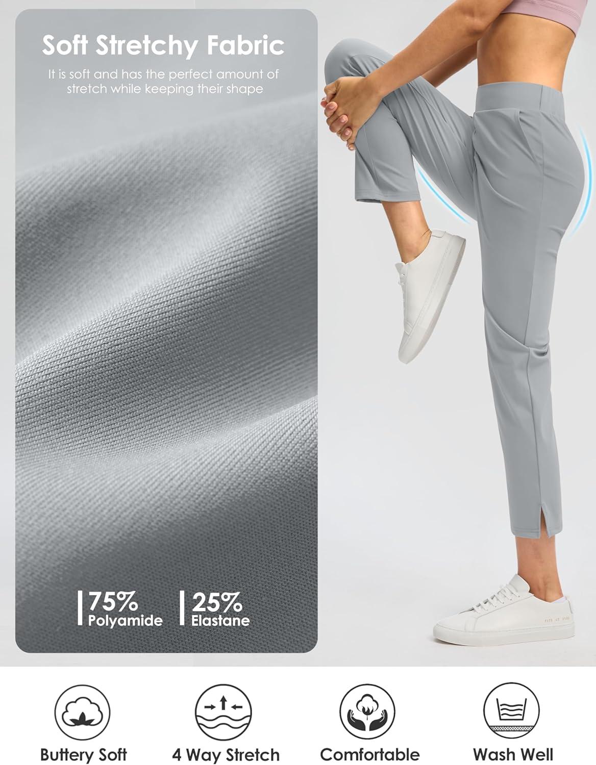 G Gradual Women’s Pants Ankle 7/8 Golf Pants 3 Pockets Stretchy Petite Travel Pants Inner Drawstring for Work Business Casual(Bright Grey)