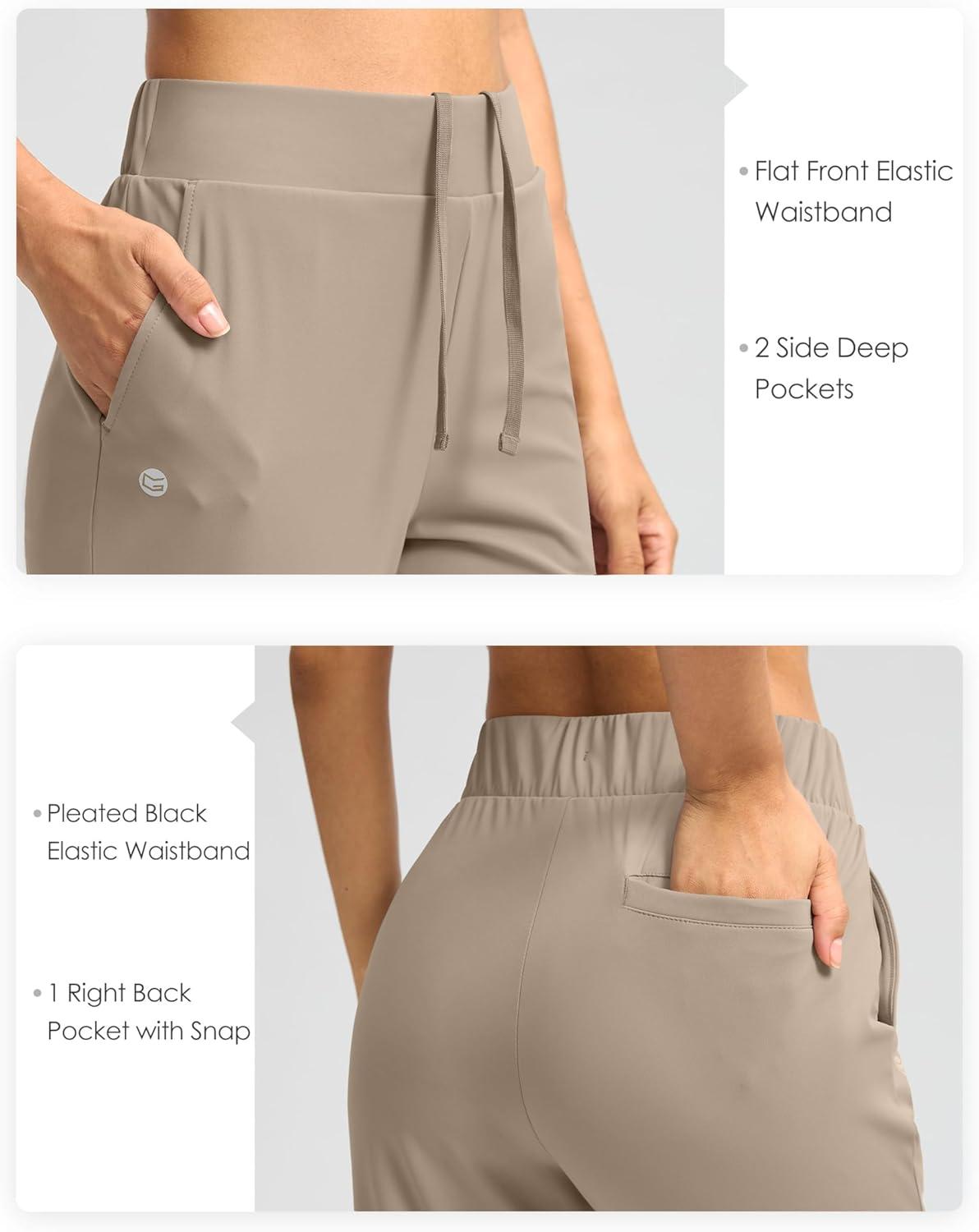 G Gradual Women’s Pants Ankle 7/8 Golf Pants 3 Pockets Stretchy Petite Travel Pants Inner Drawstring for Work Business Casual(Dark Khaki)