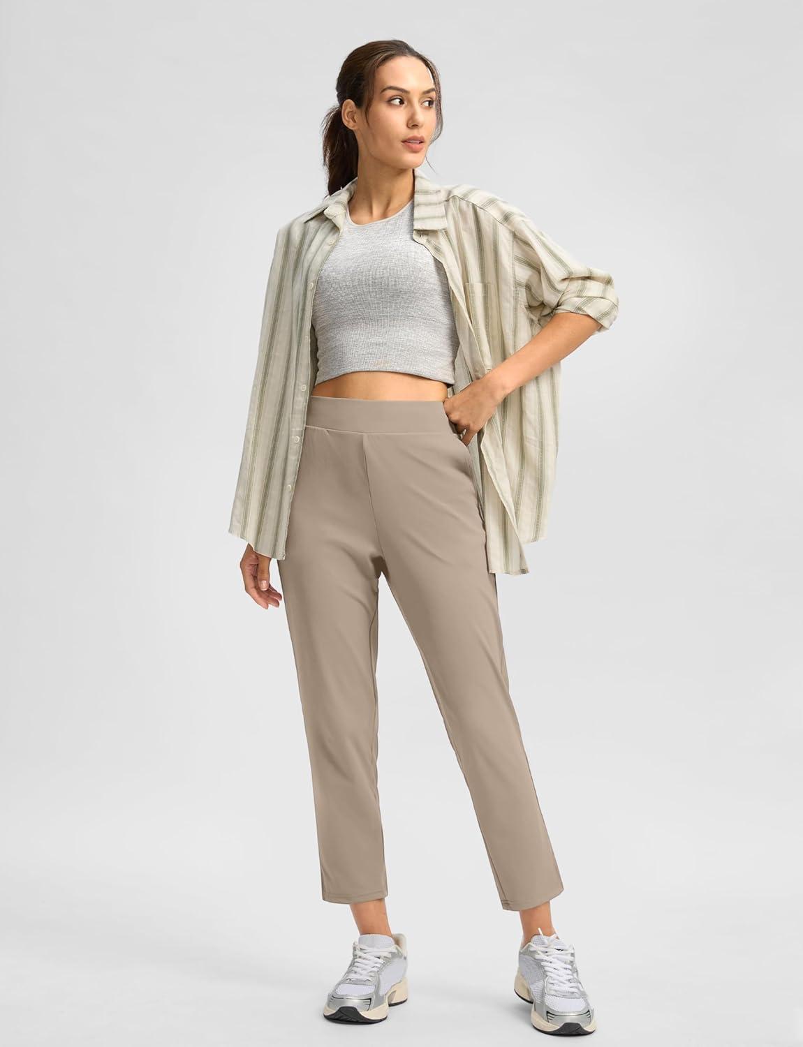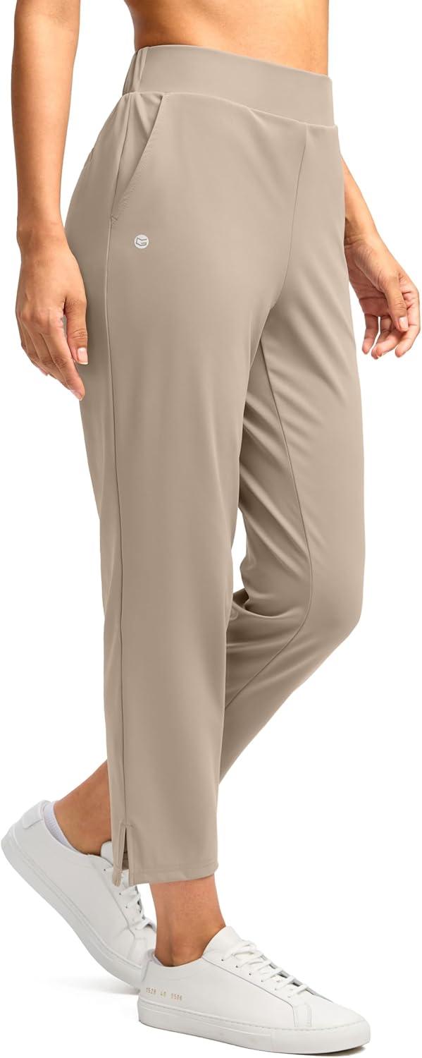G Gradual Women's Pants Ankle 7/8 Golf Pants 3 Pockets Stretchy Petite Travel Pants Inner Drawstring for Work Business Casual(Dark Khaki)