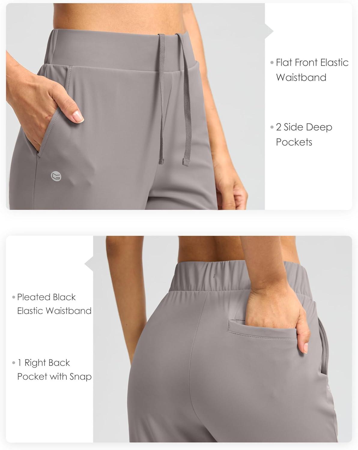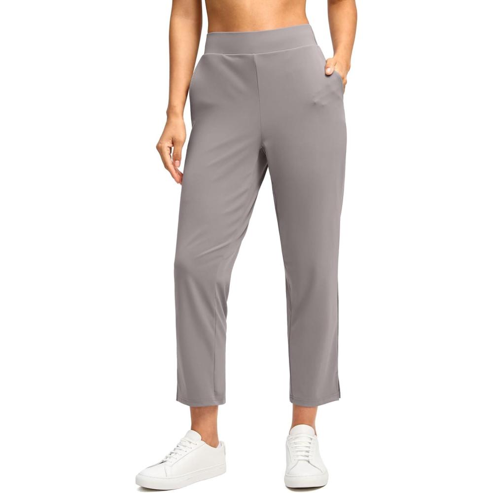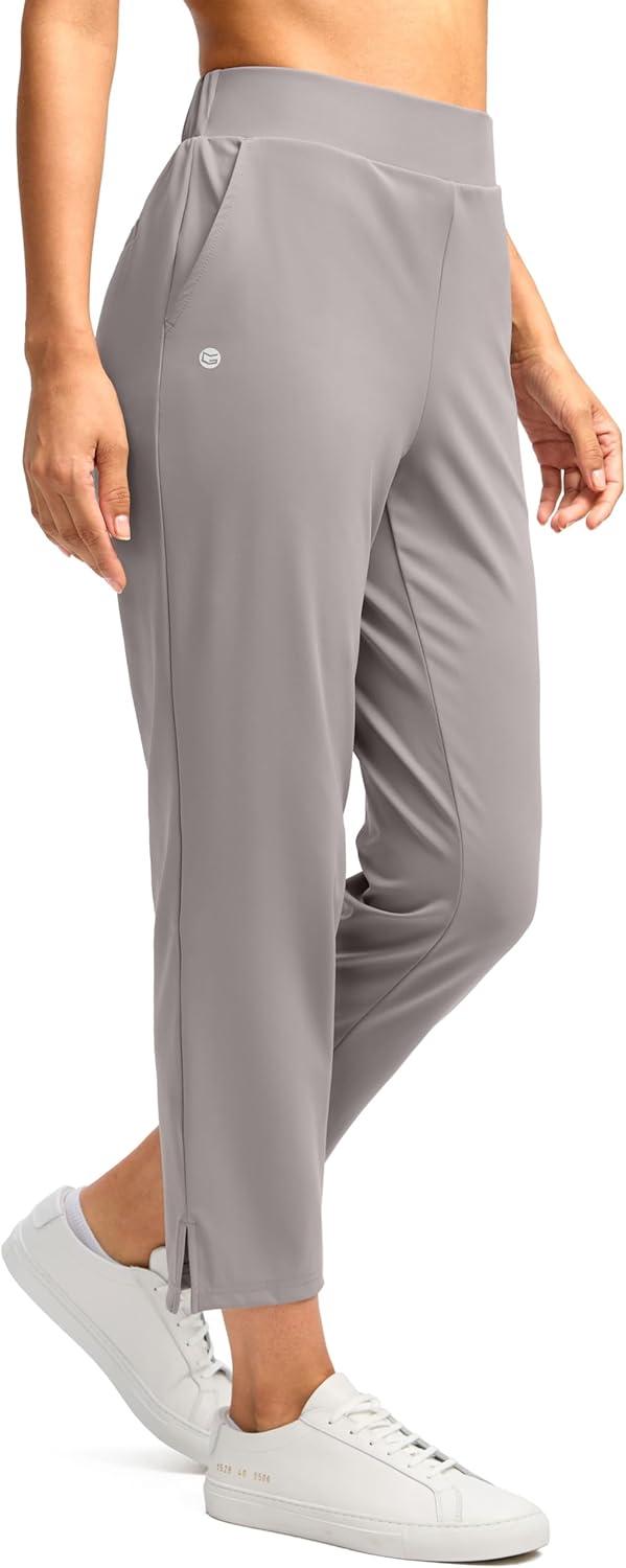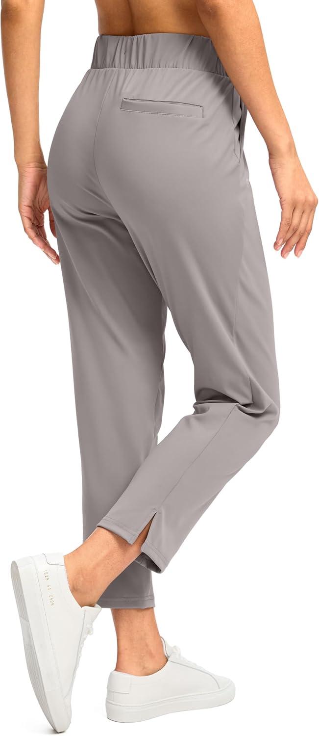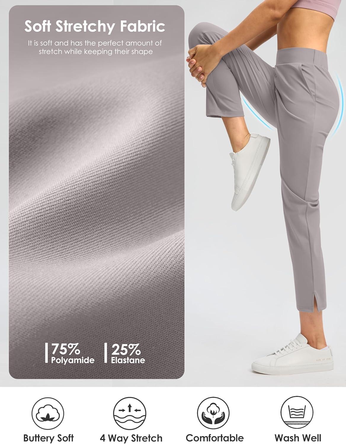 G Gradual Women's Pants Ankle 7/8 Golf Pants 3 Pockets Stretchy Petite Travel Pants Inner Drawstring for Work Business Casual(Dusty Grey)