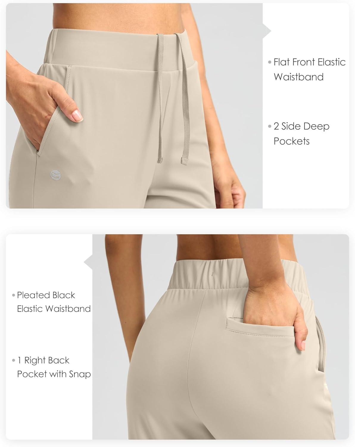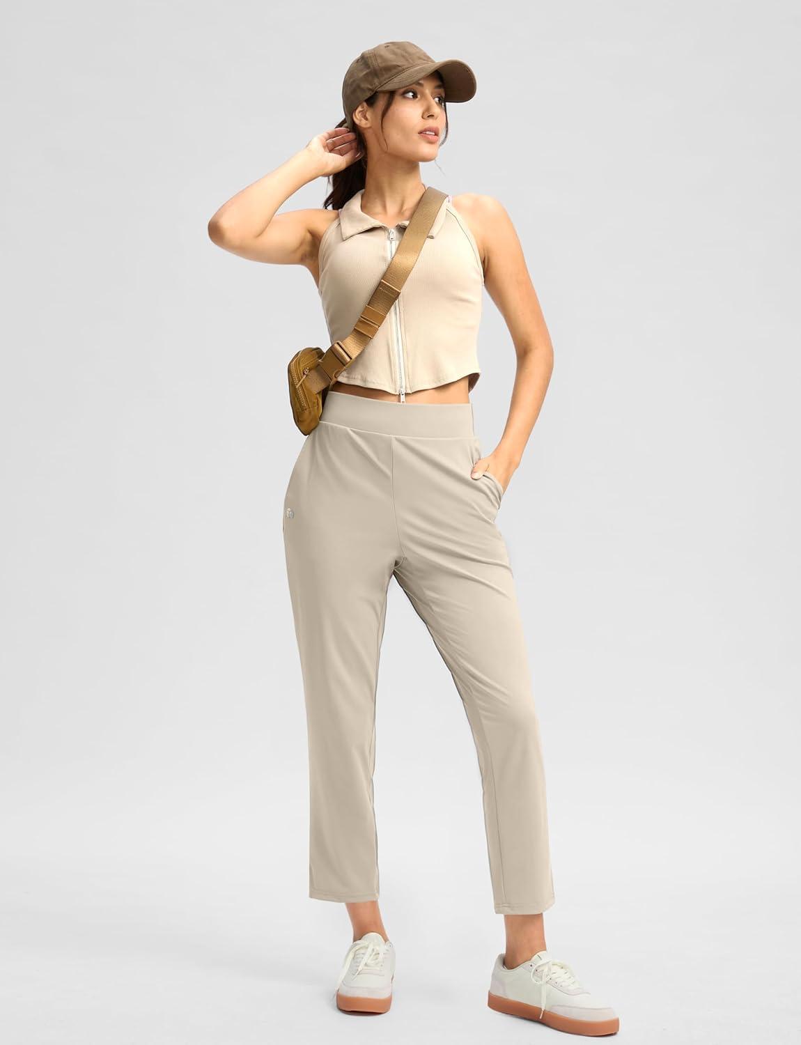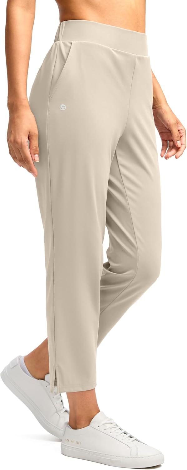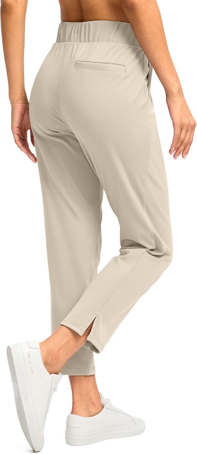 G Gradual Women's Pants Ankle 7/8 Golf Pants 3 Pockets Stretchy Petite Travel Pants Inner Drawstring for Work Business Casual(Dusty White)