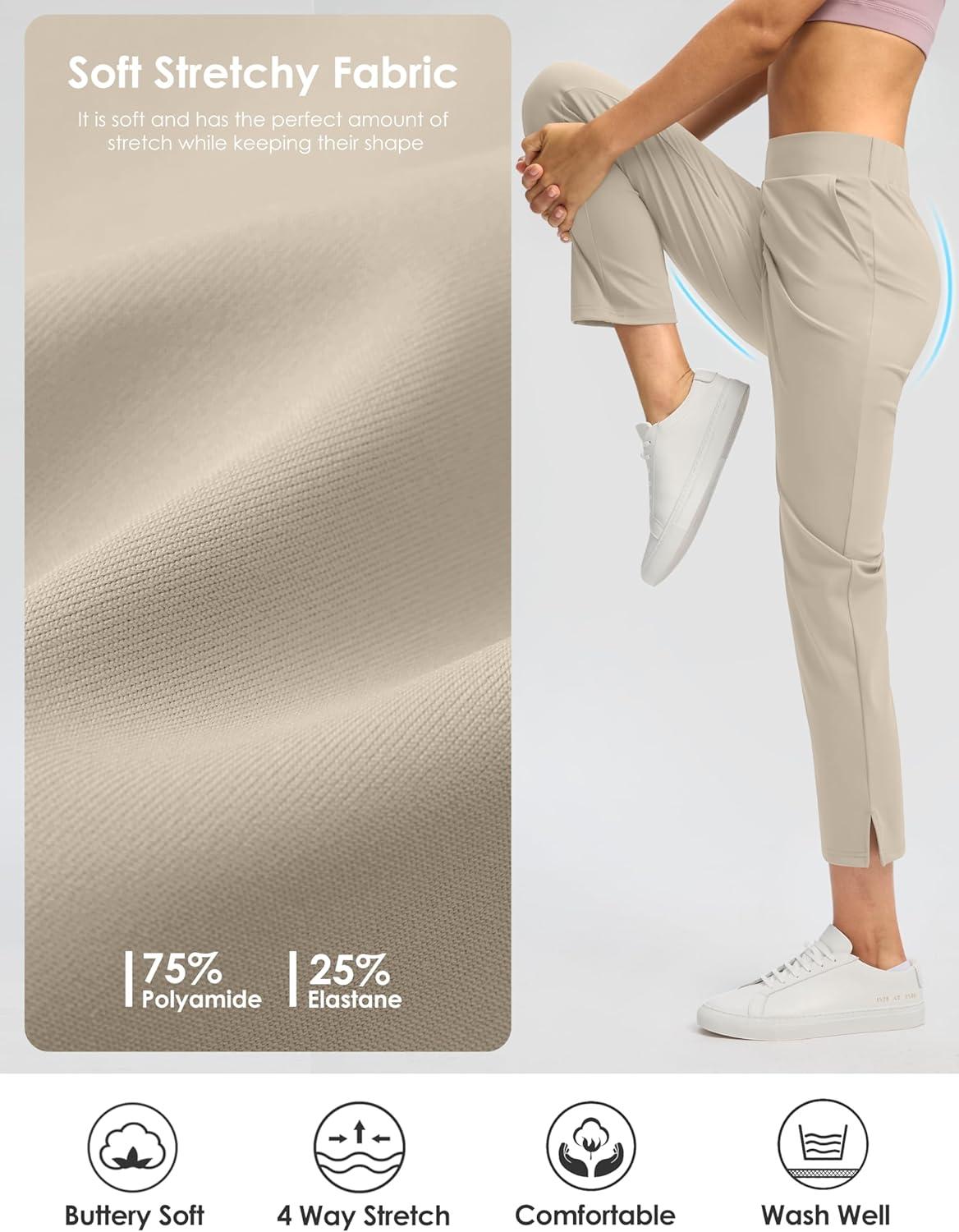 G Gradual Women’s Pants Ankle 7/8 Golf Pants 3 Pockets Stretchy Petite Travel Pants Inner Drawstring for Work Business Casual(Dusty White)