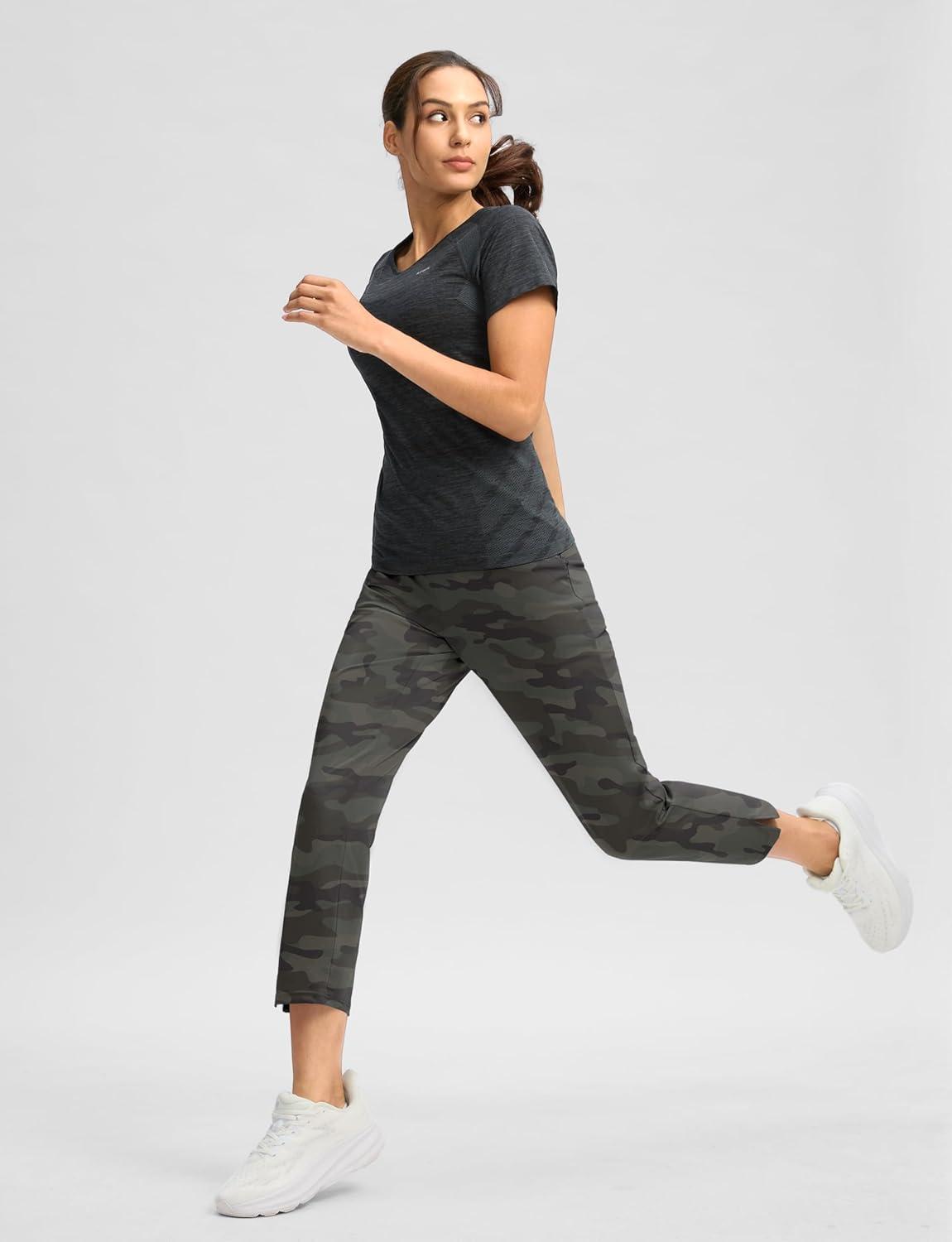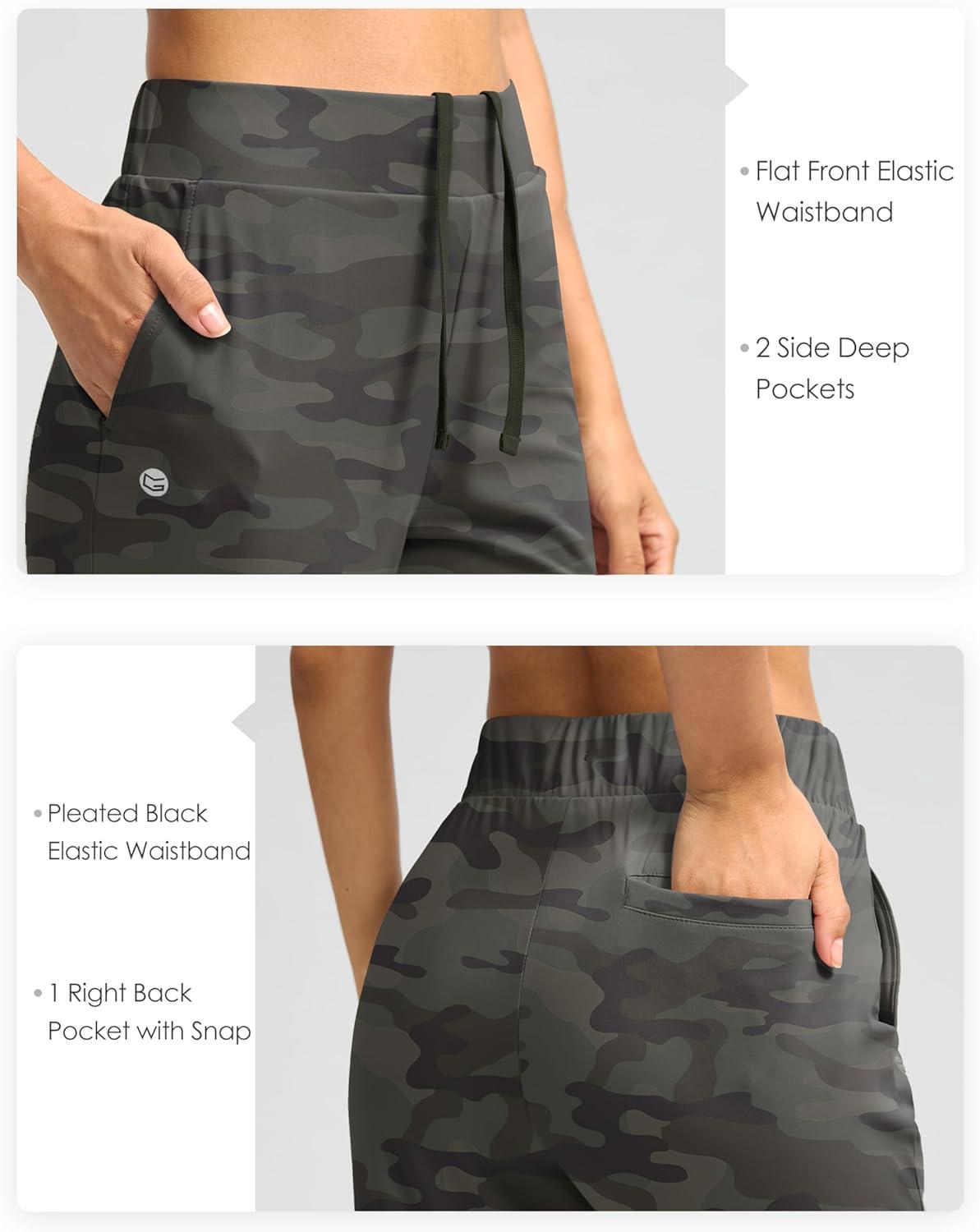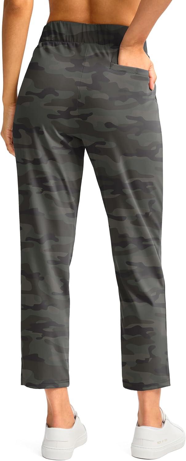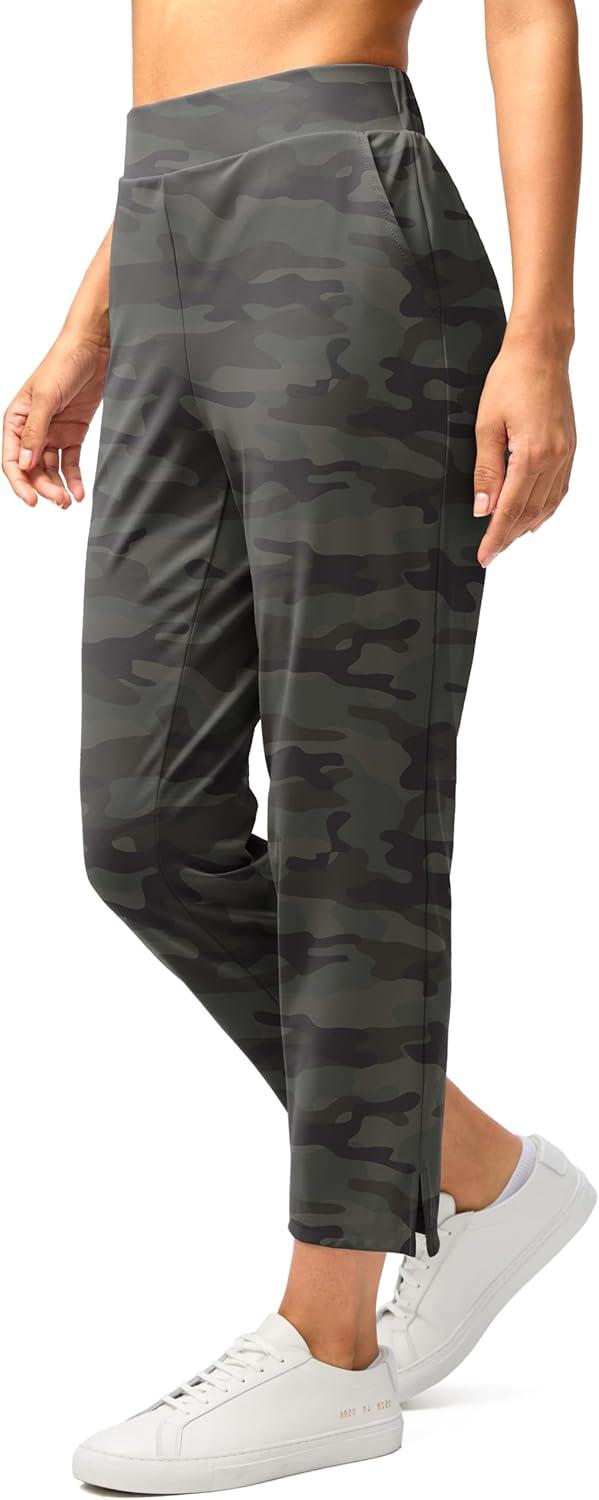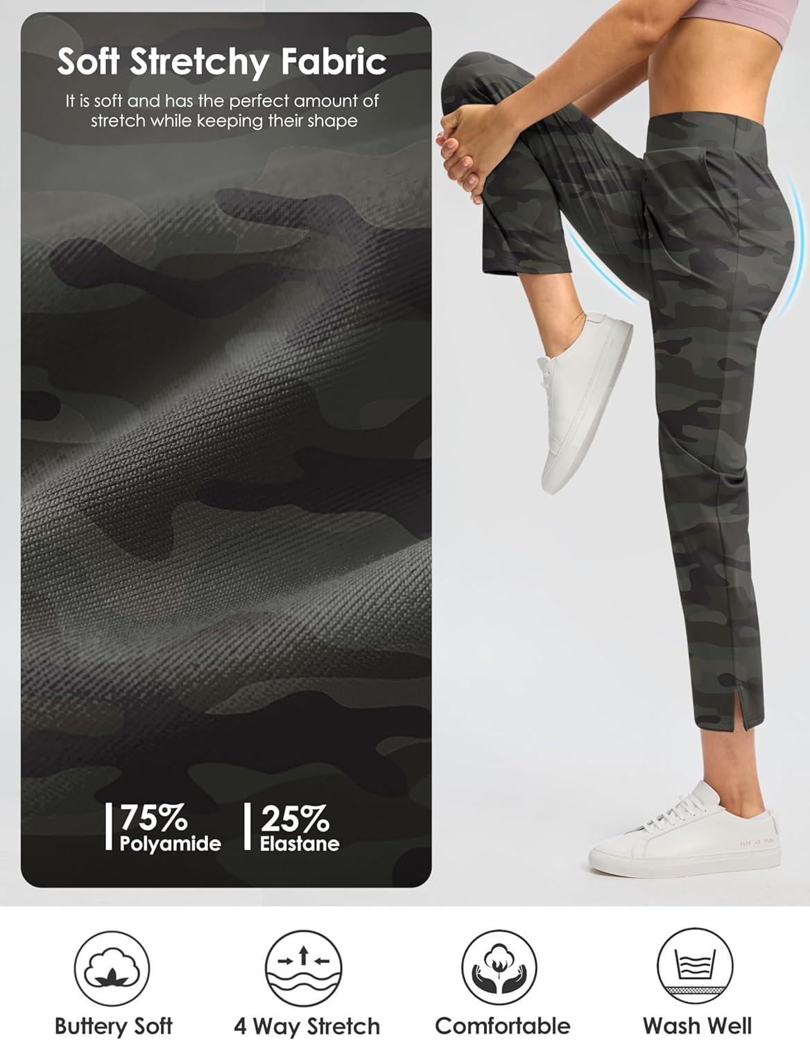 G Gradual Women’s Pants Ankle 7/8 Golf Pants 3 Pockets Stretchy Petite Travel Pants Inner Drawstring for Work Business Casual(Green Camo)