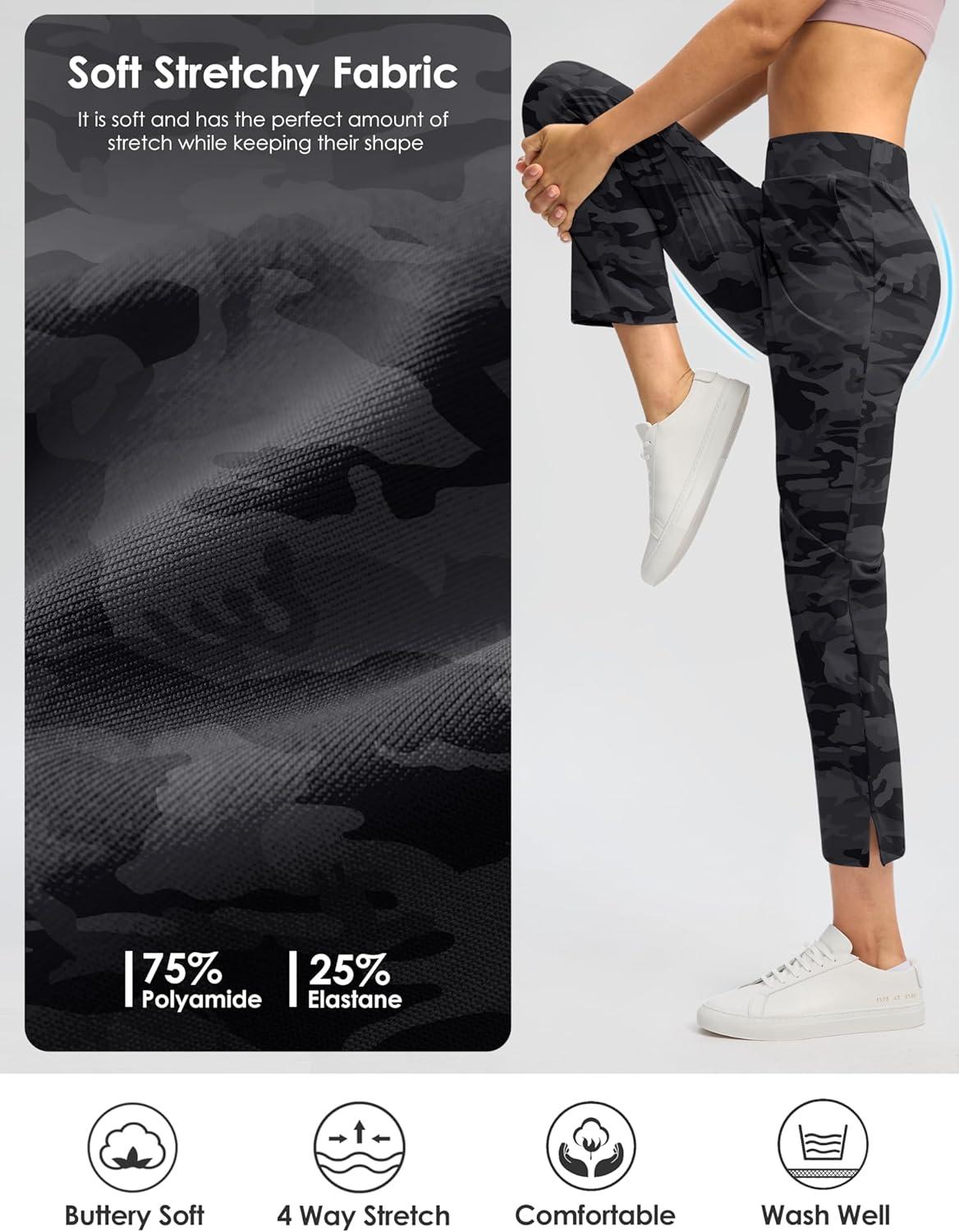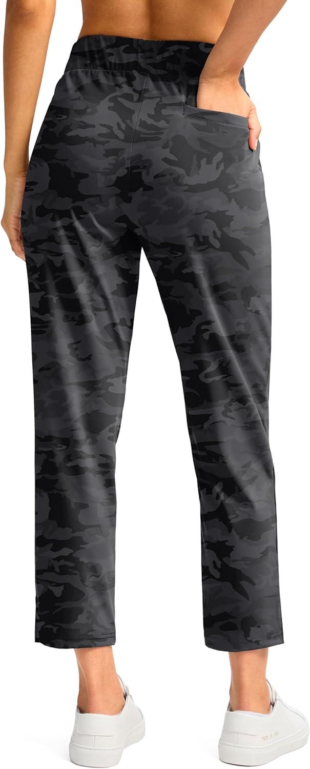 G Gradual Women’s Pants Ankle 7/8 Golf Pants 3 Pockets Stretchy Petite Travel Pants Inner Drawstring for Work Business Casual(Grey Camo)