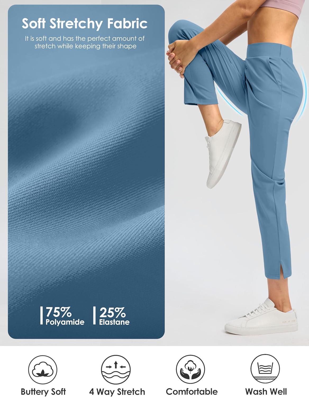 G Gradual Women’s Pants Ankle 7/8 Golf Pants 3 Pockets Stretchy Petite Travel Pants Inner Drawstring for Work Business Casual(Indigo)