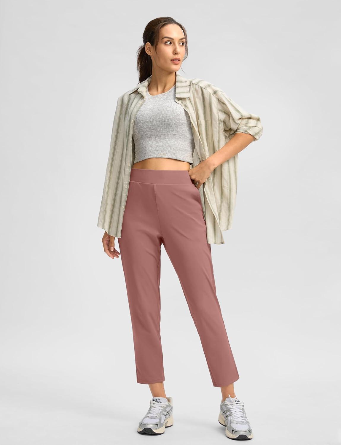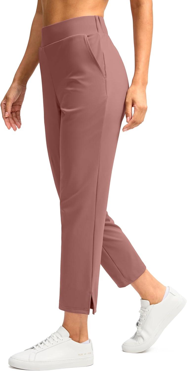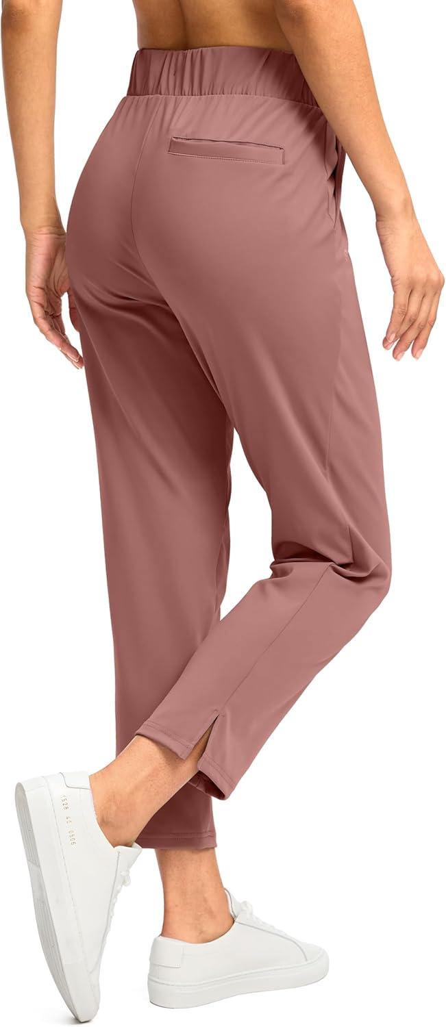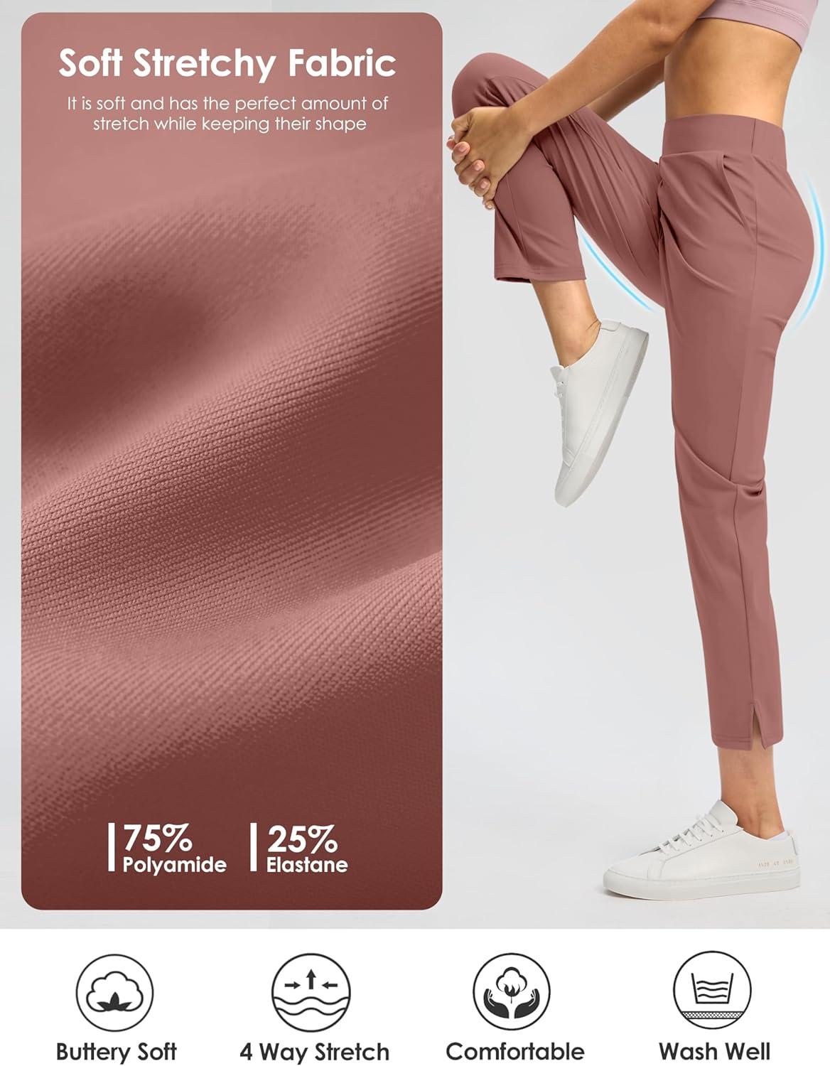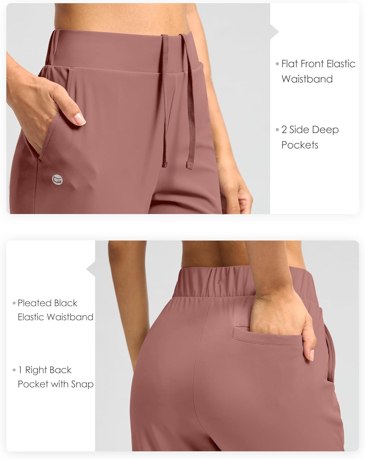 G Gradual Women’s Pants Ankle 7/8 Golf Pants 3 Pockets Stretchy Petite Travel Pants Inner Drawstring for Work Business Casual(Mauve Pink)