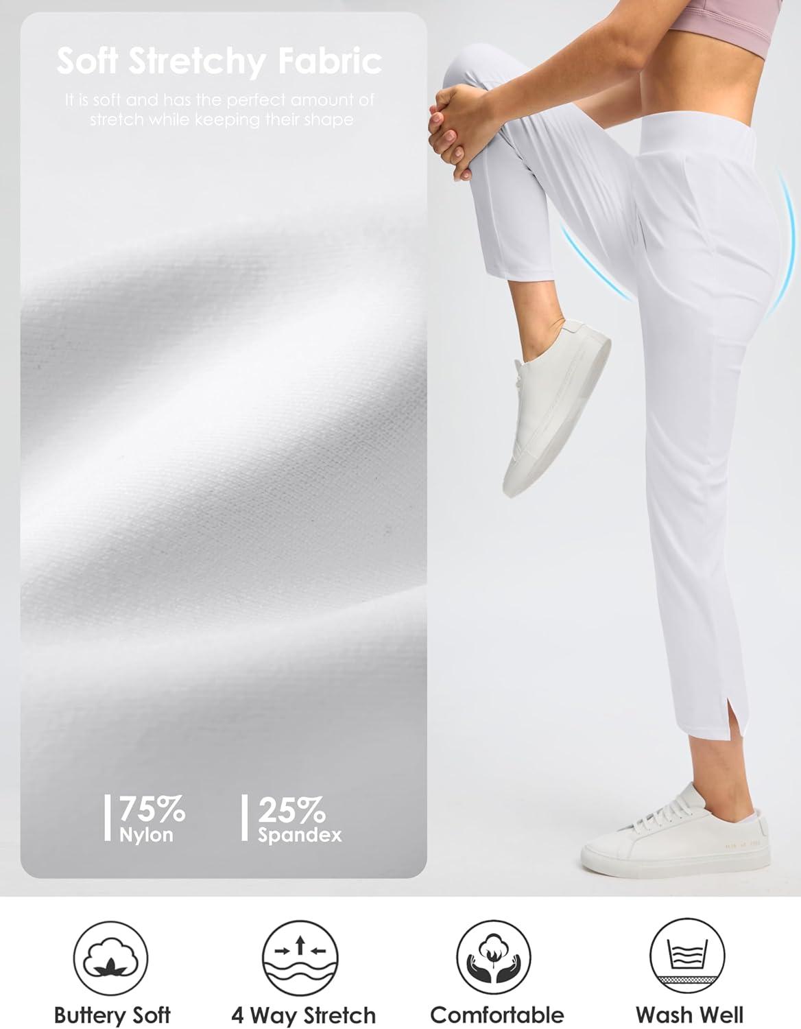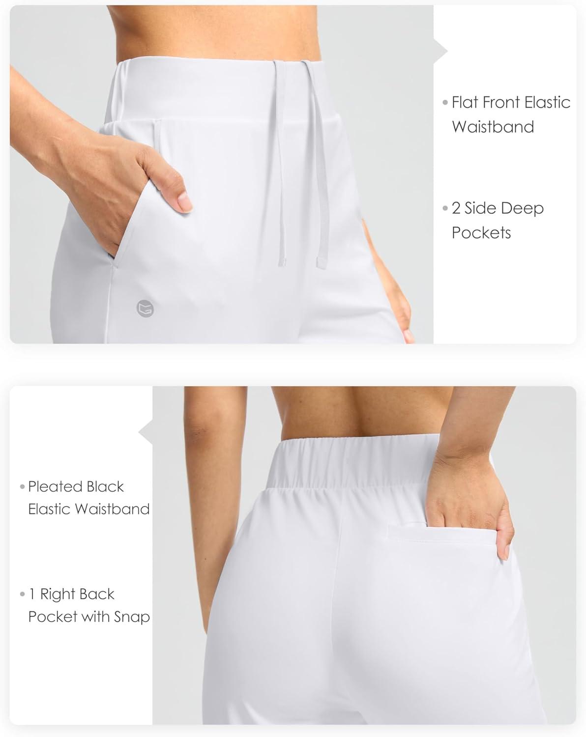 G Gradual Women’s Pants Ankle 7/8 Golf Pants 3 Pockets Stretchy Petite Travel Pants Inner Drawstring for Work Business Casual(White)