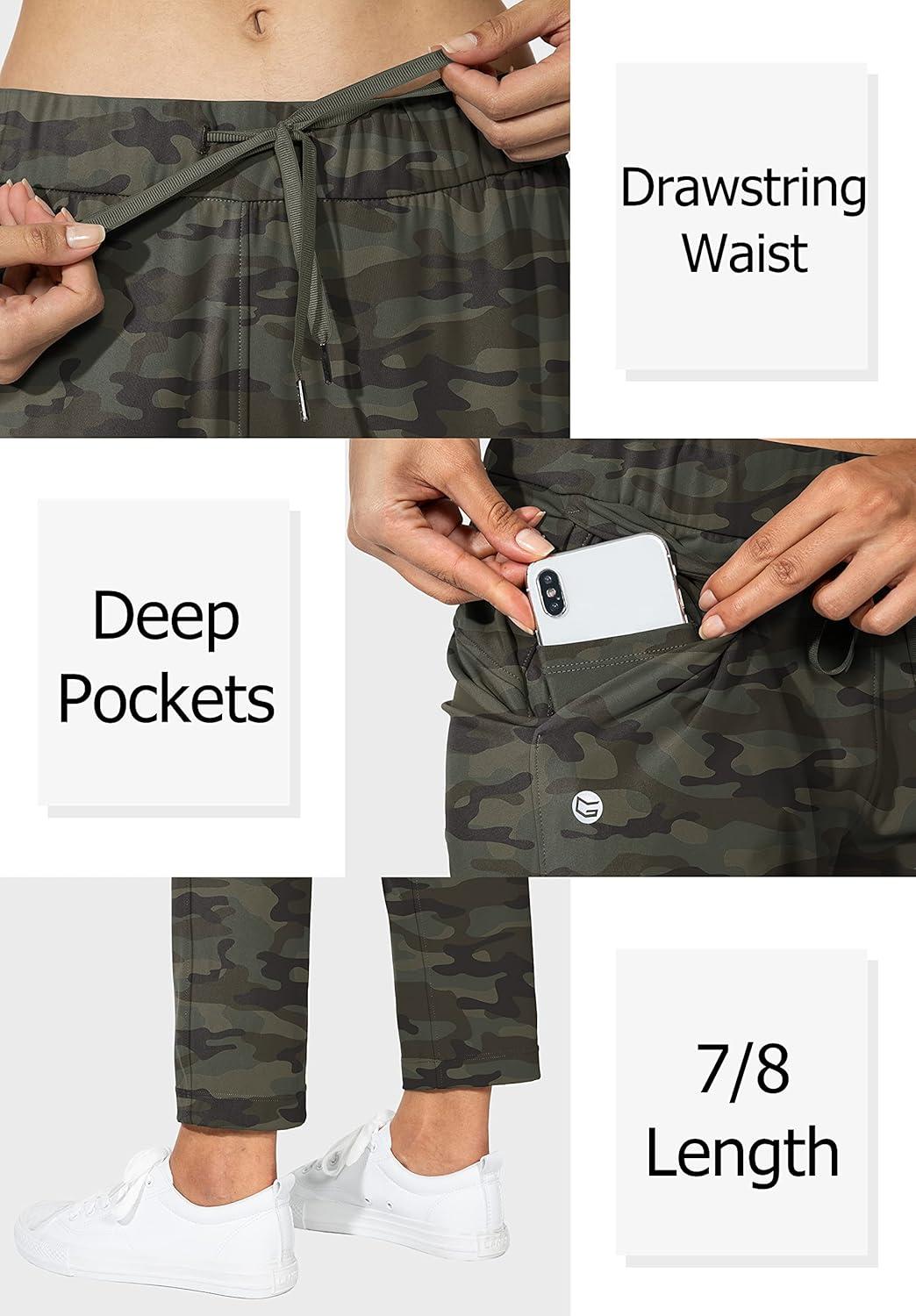 G Gradual Women’s Pants with Deep Pockets 7/8 Stretch Ankle Sweatpants for Golf, Athletic, Lounge, Travel, Work(Green Camo)