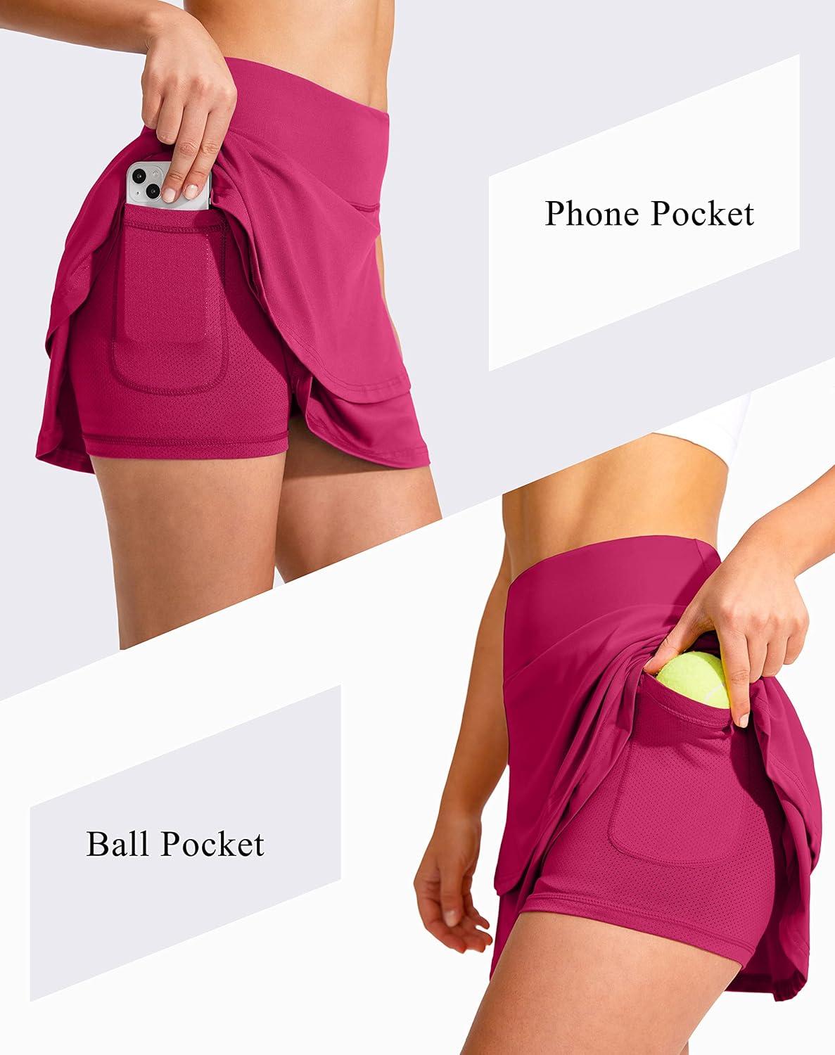 G Gradual Women’s Pleated Tennis Skirts with 4 Pockets Athletic Golf Skorts for Women’s Workout Running(Rosy)