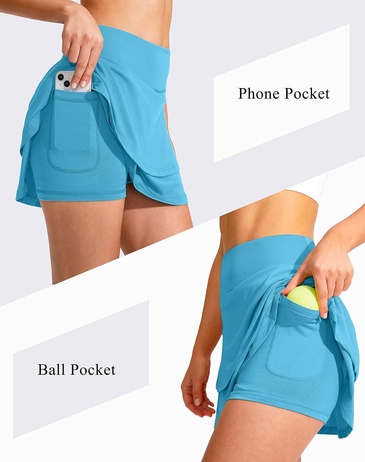 G Gradual Women's Pleated Tennis Skirts with 4 Pockets Athletic Golf Skorts for Women's Workout Running(Sky Blue)