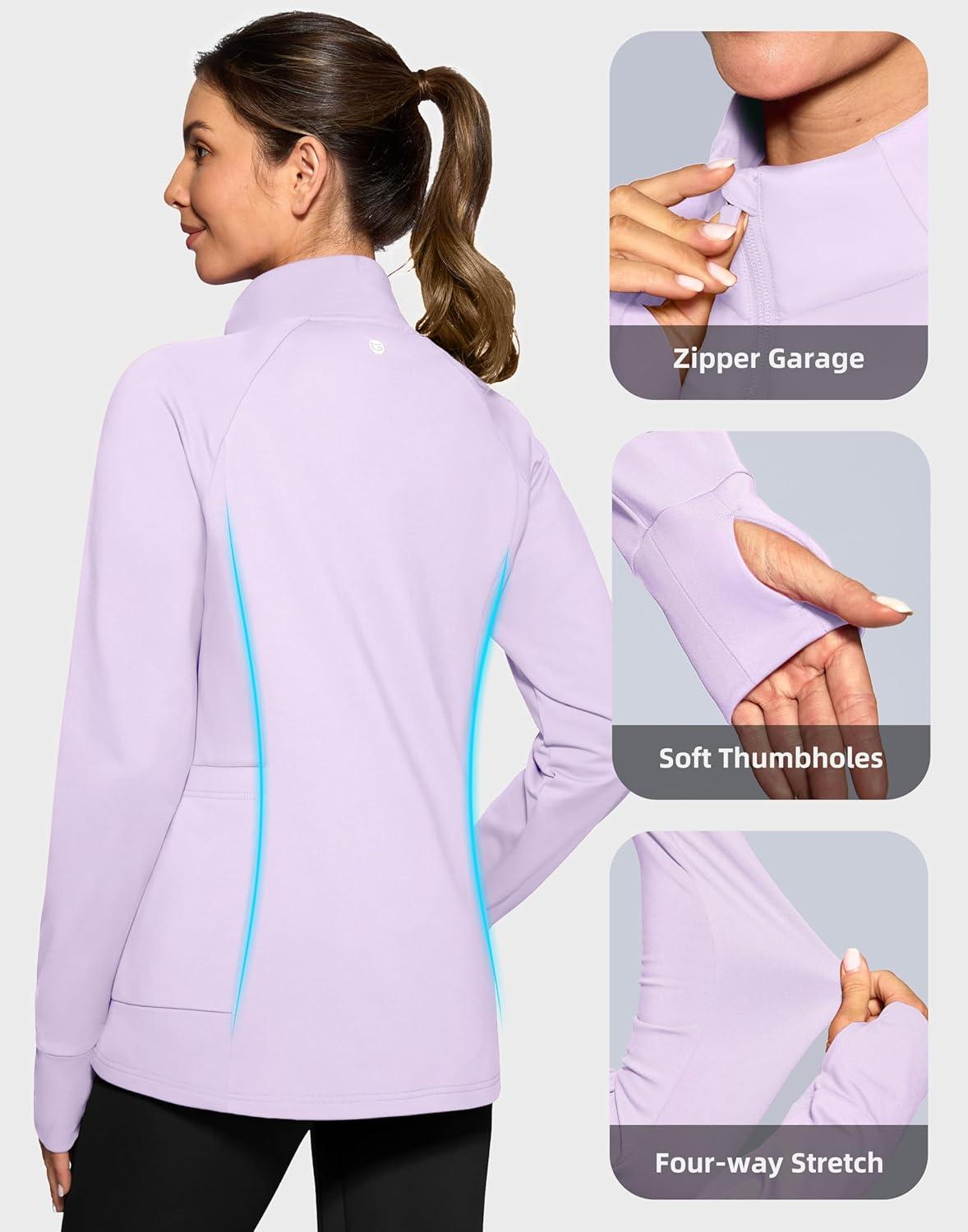 G Gradual Women’s Running Fleece Lined Jackets 6 Pockets Lightweight Water Resistant Puffer Jacket for Hiking Travel(Purple Rose)