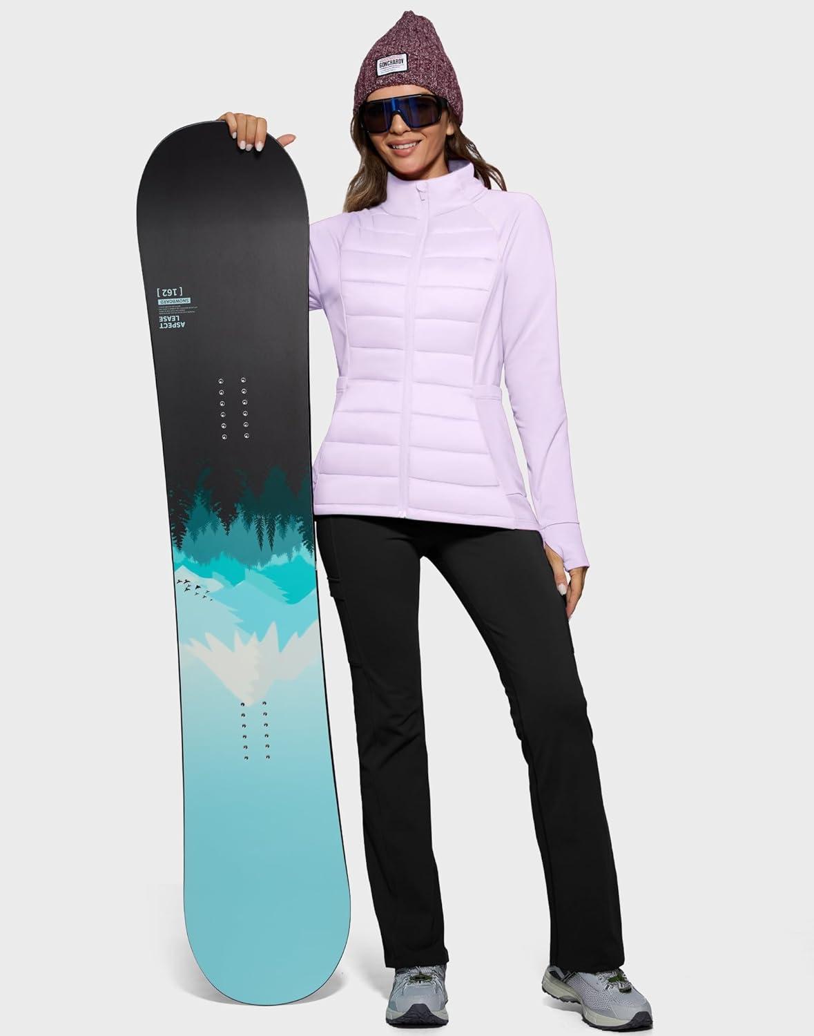 G Gradual Women's Running Fleece Lined Jackets 6 Pockets Lightweight Water Resistant Puffer Jacket for Hiking Travel(Purple Rose)
