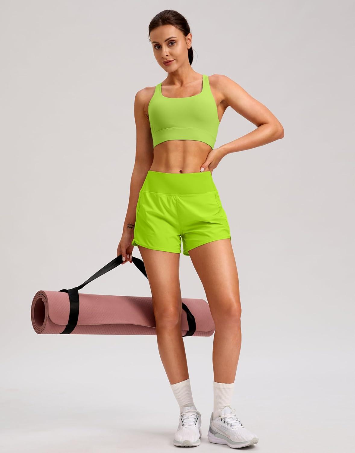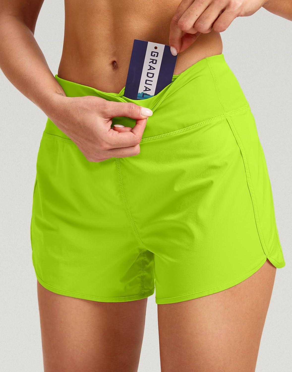 imageG Gradual Womens Running Shorts with Mesh Liner 3quot Workout Athletic Shorts for Women with Phone PocketsFluorescent Green