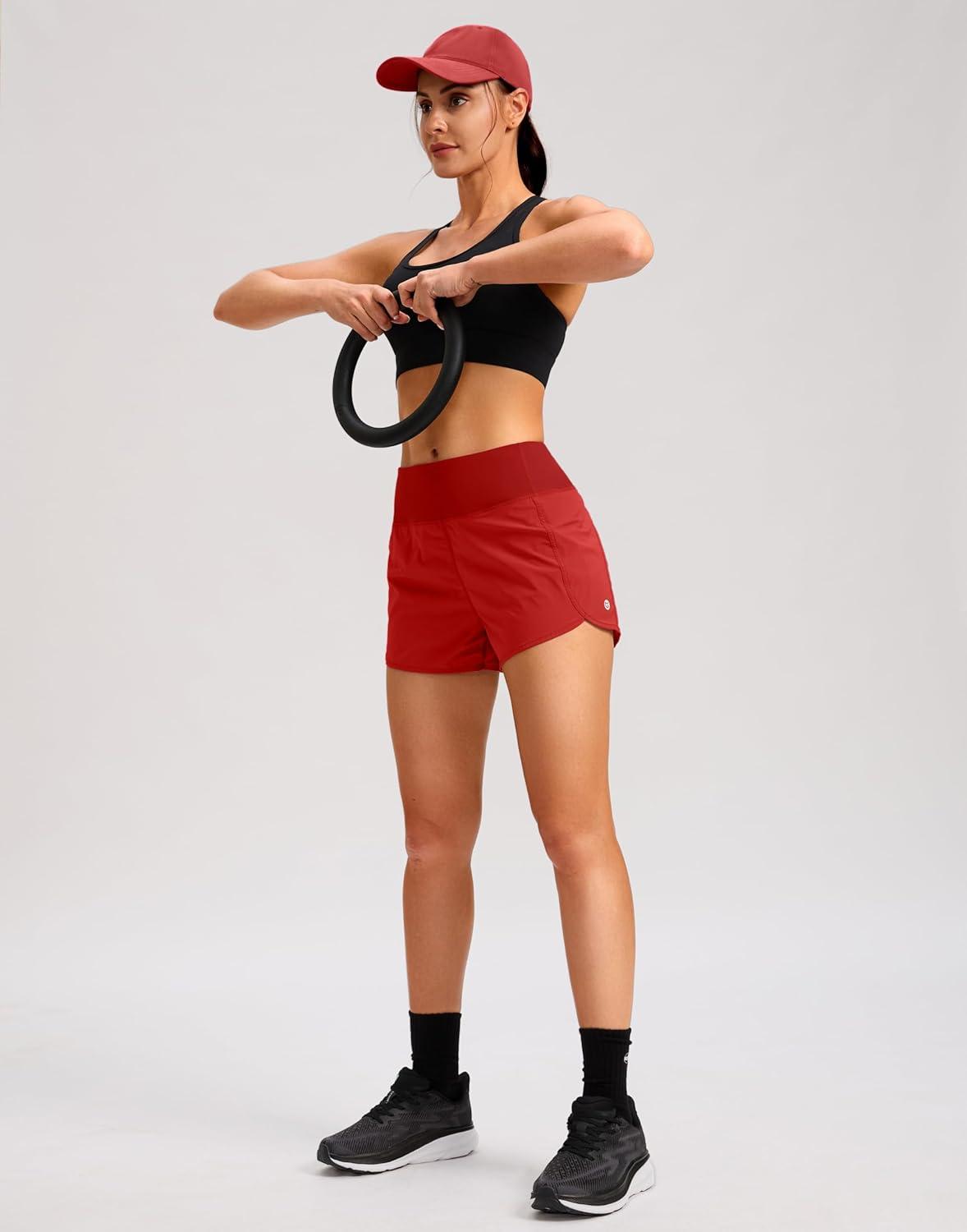G Gradual Women's Running Shorts with Mesh Liner 3" Workout Athletic Shorts for Women with Phone Pockets(Red)