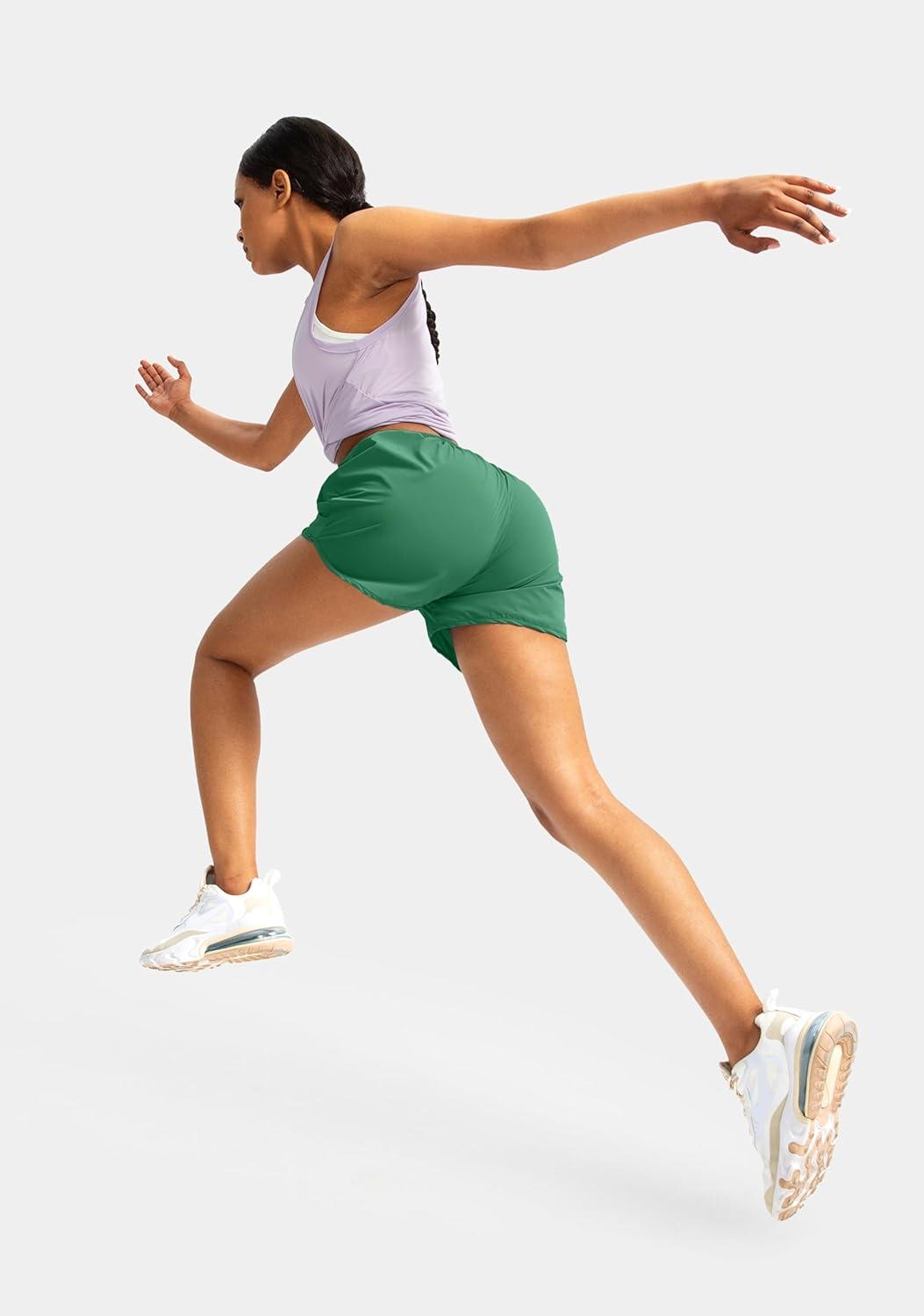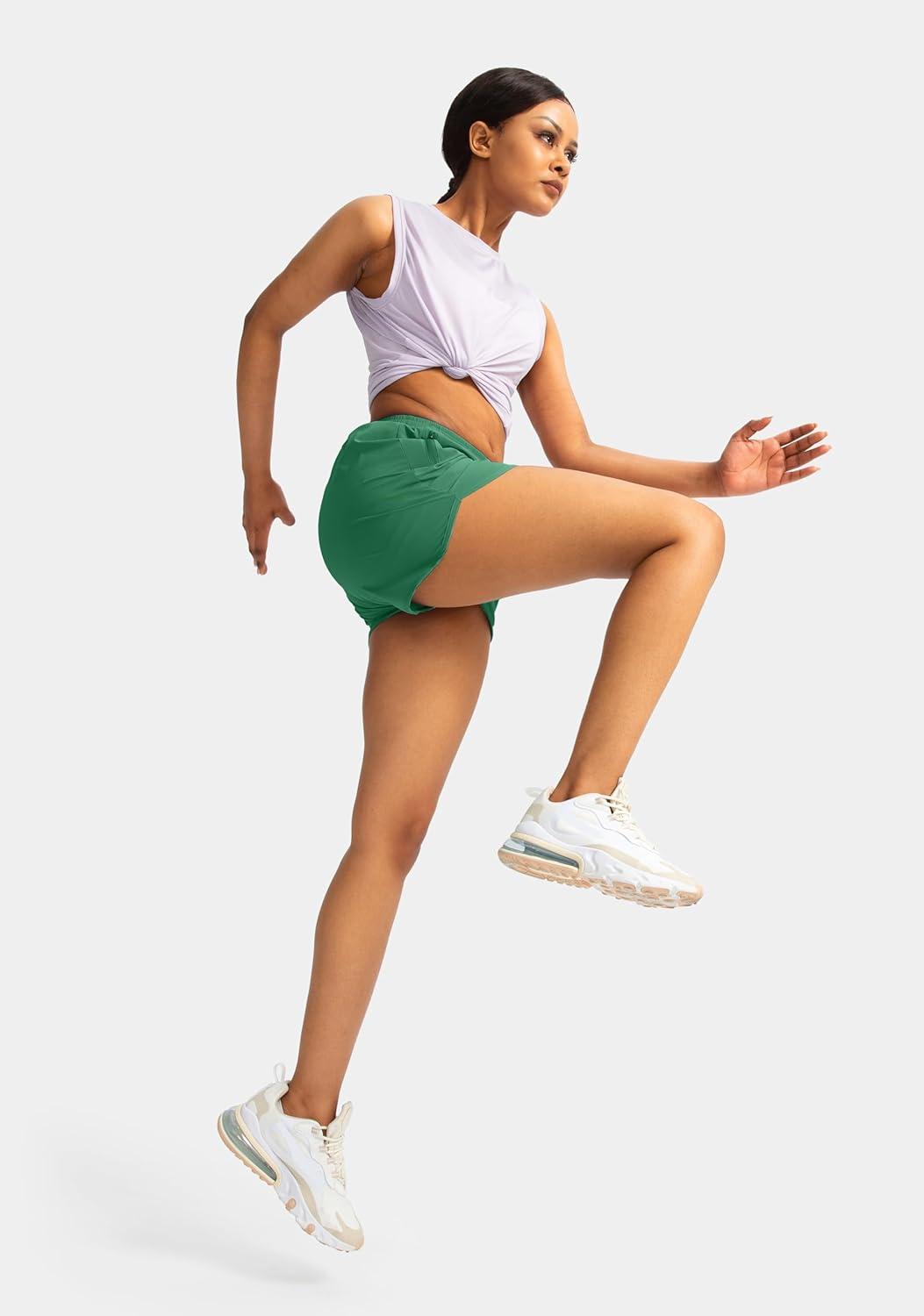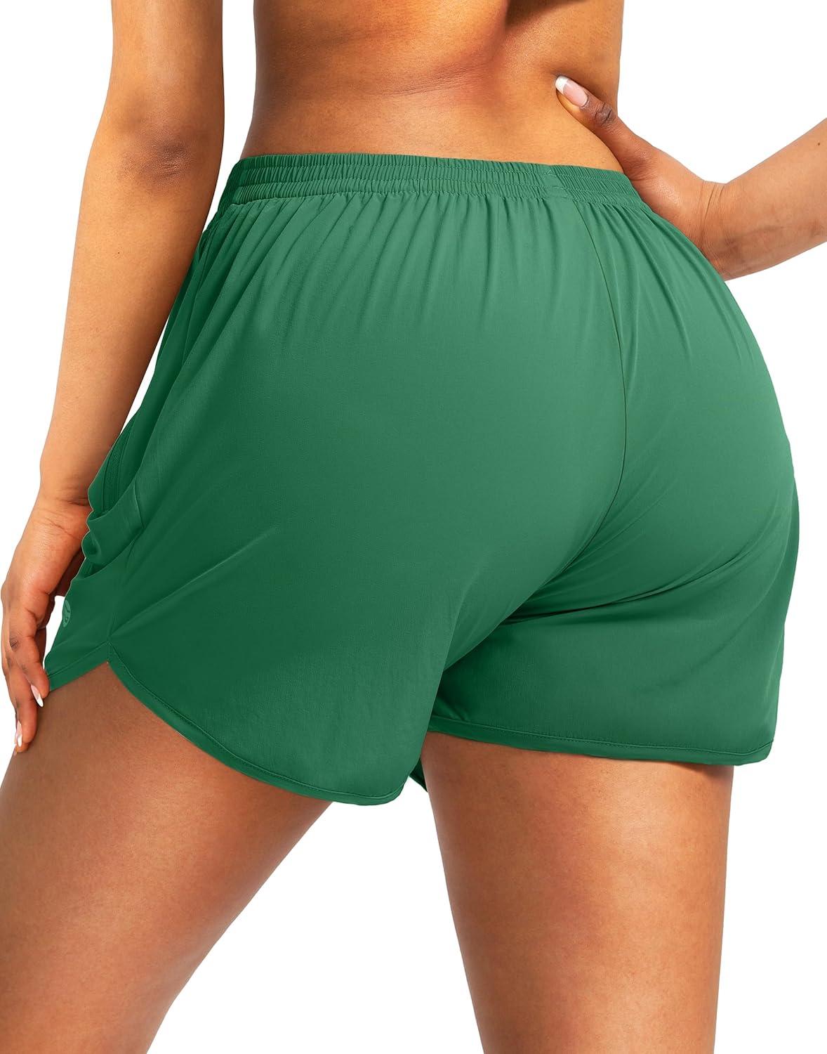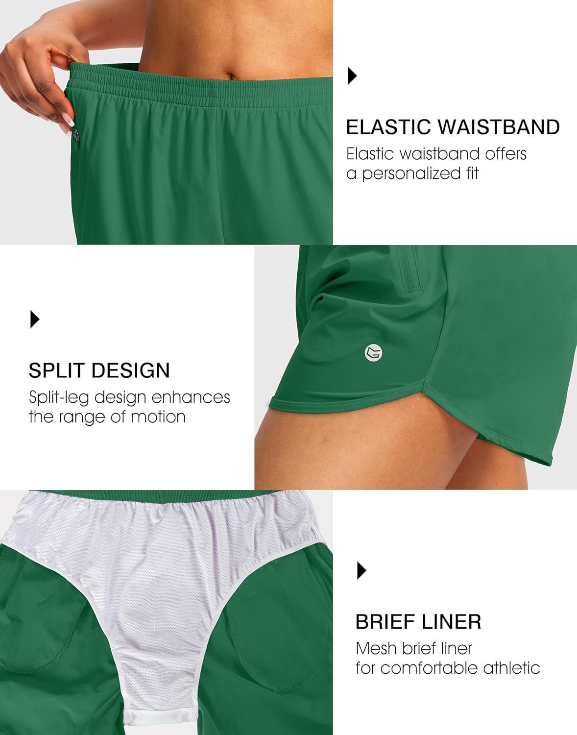 G Gradual Women’s Running Shorts with Zipper Pockets Quick Dry Athletic Workout Gym 3″ Shorts for Women with Comfy Liner(Green)