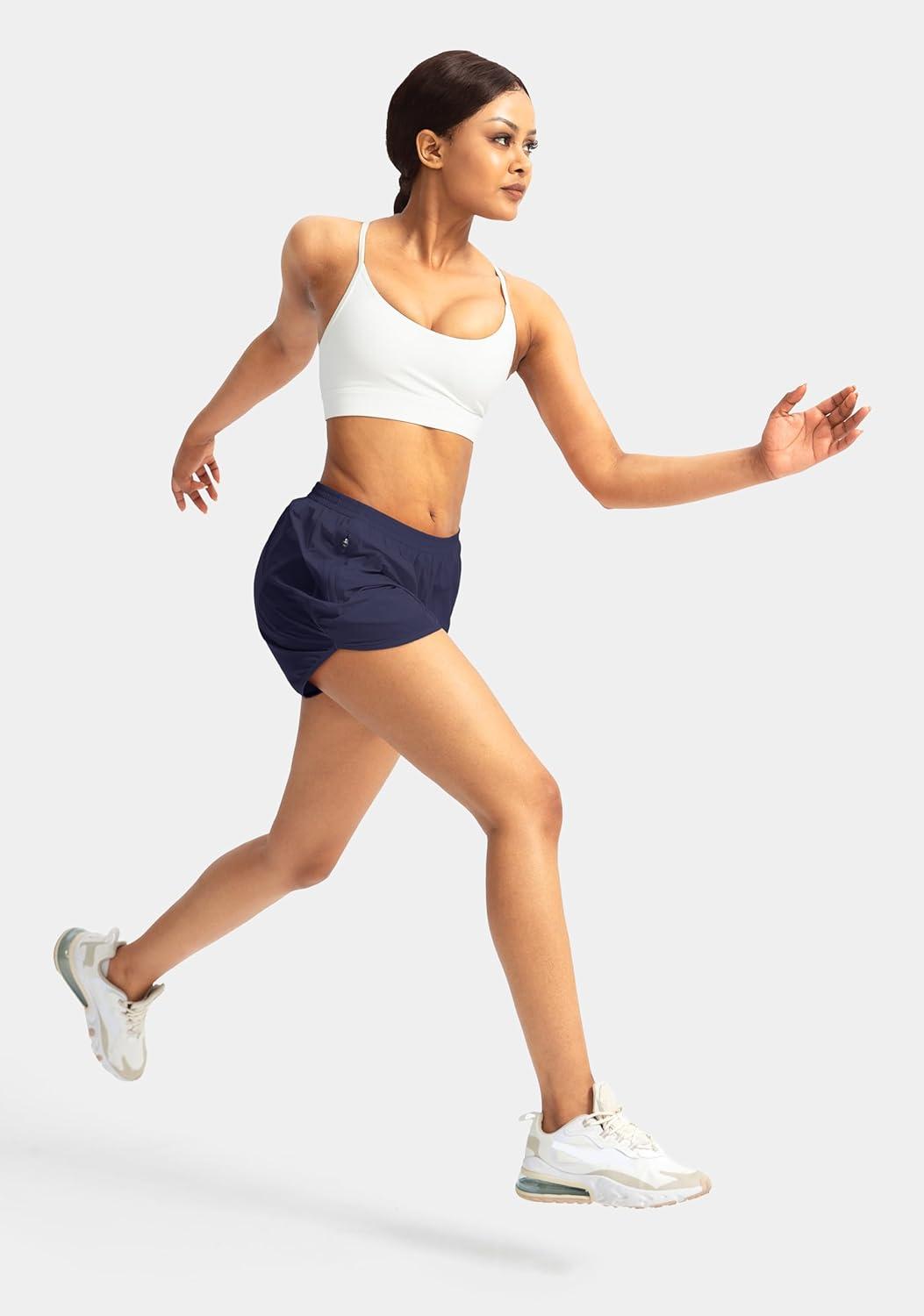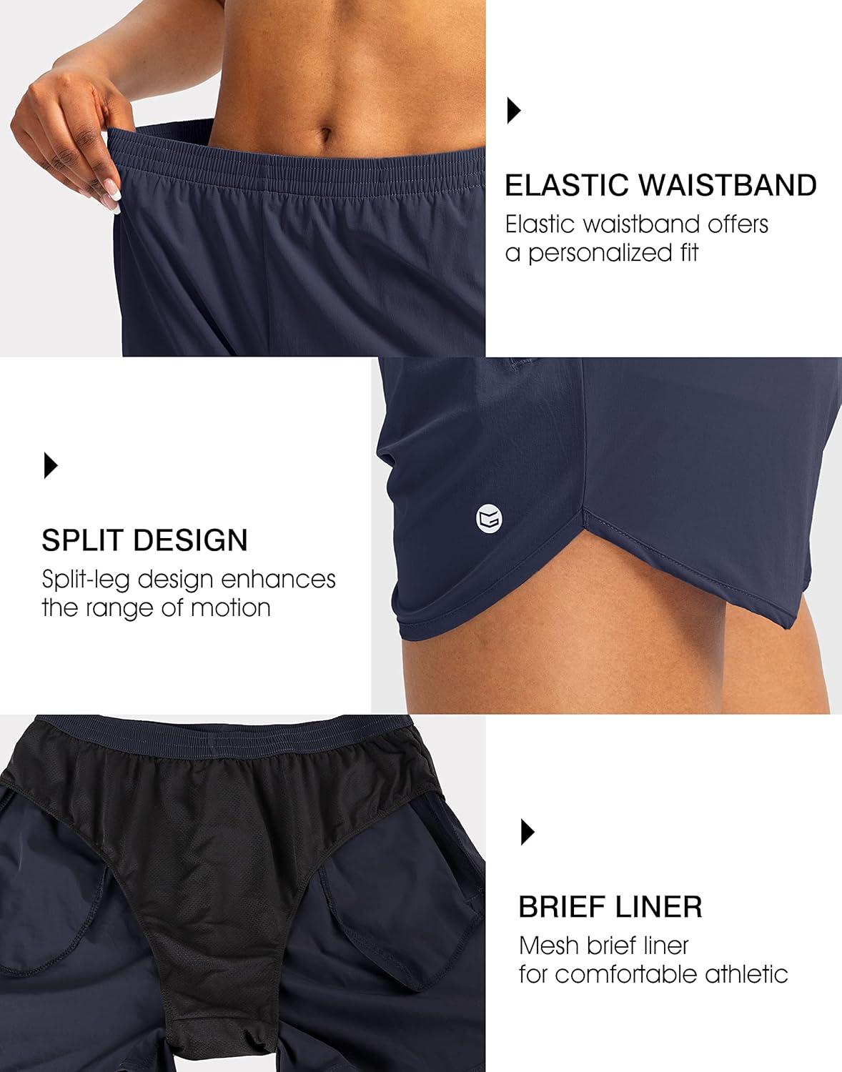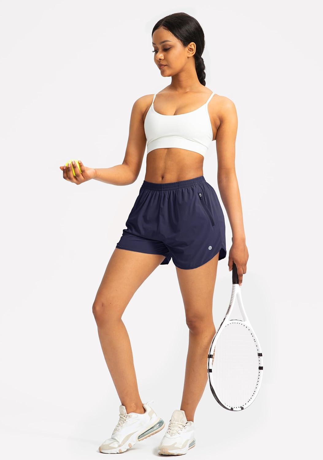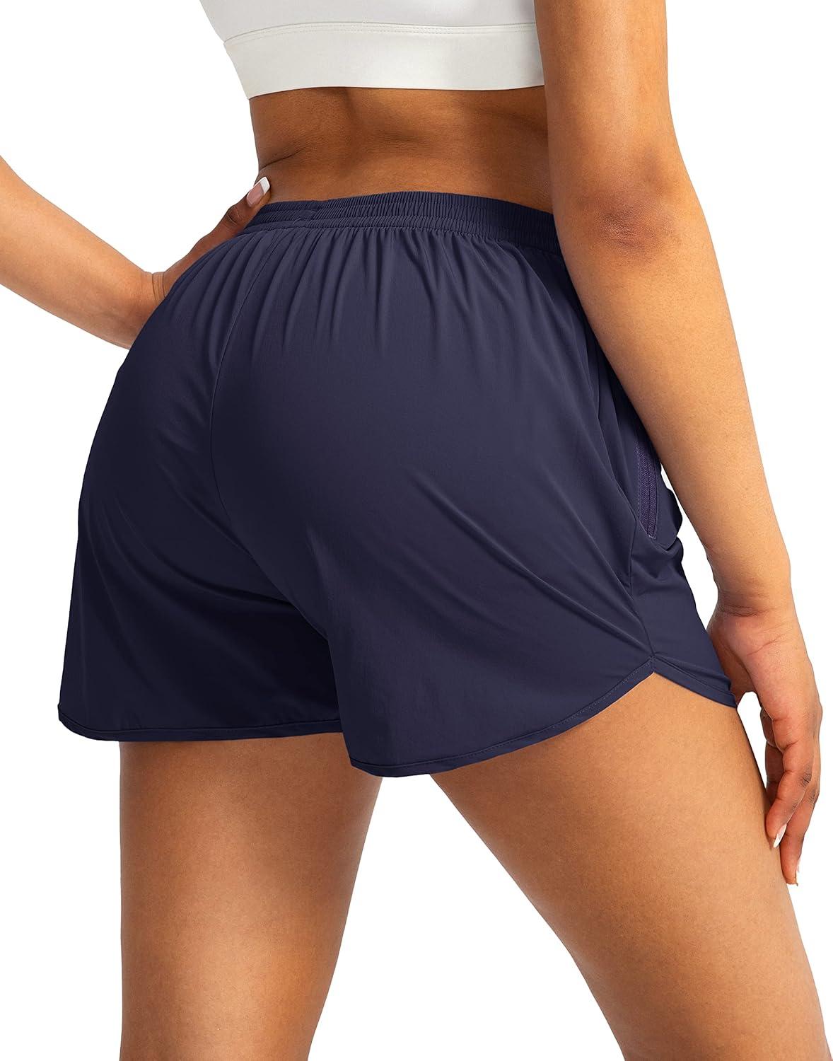 G Gradual Women’s Running Shorts with Zipper Pockets Quick Dry Athletic Workout Gym 3″ Shorts for Women with Comfy Liner(Navy)