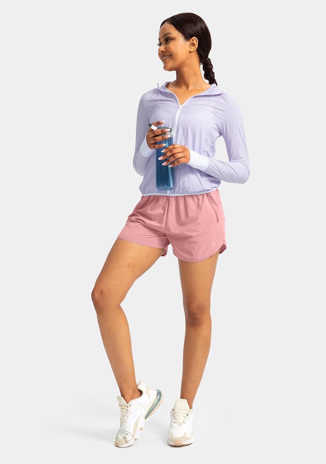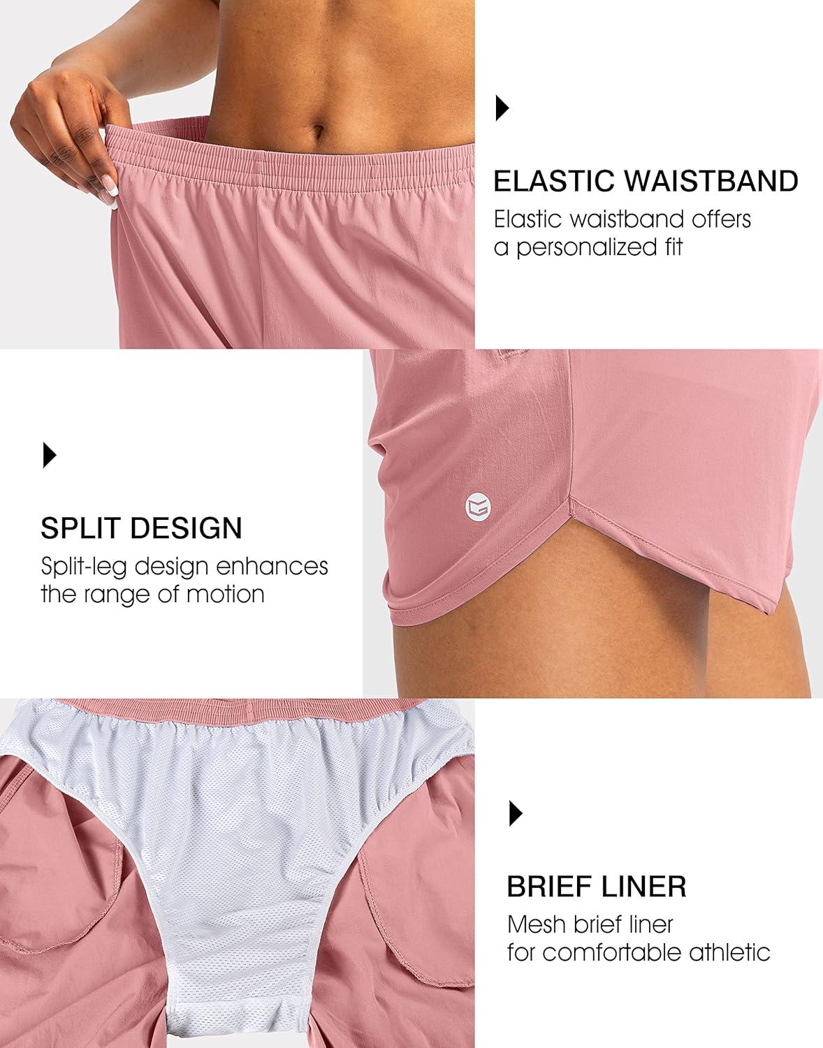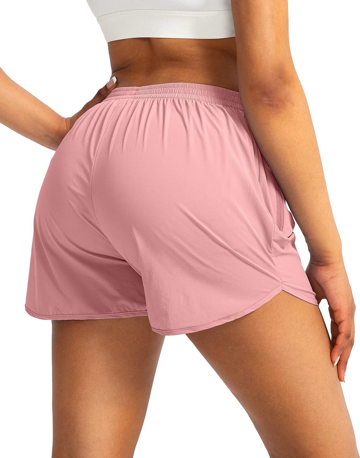 G Gradual Women’s Running Shorts with Zipper Pockets Quick Dry Athletic Workout Gym 3″ Shorts for Women with Comfy Liner(Pink)