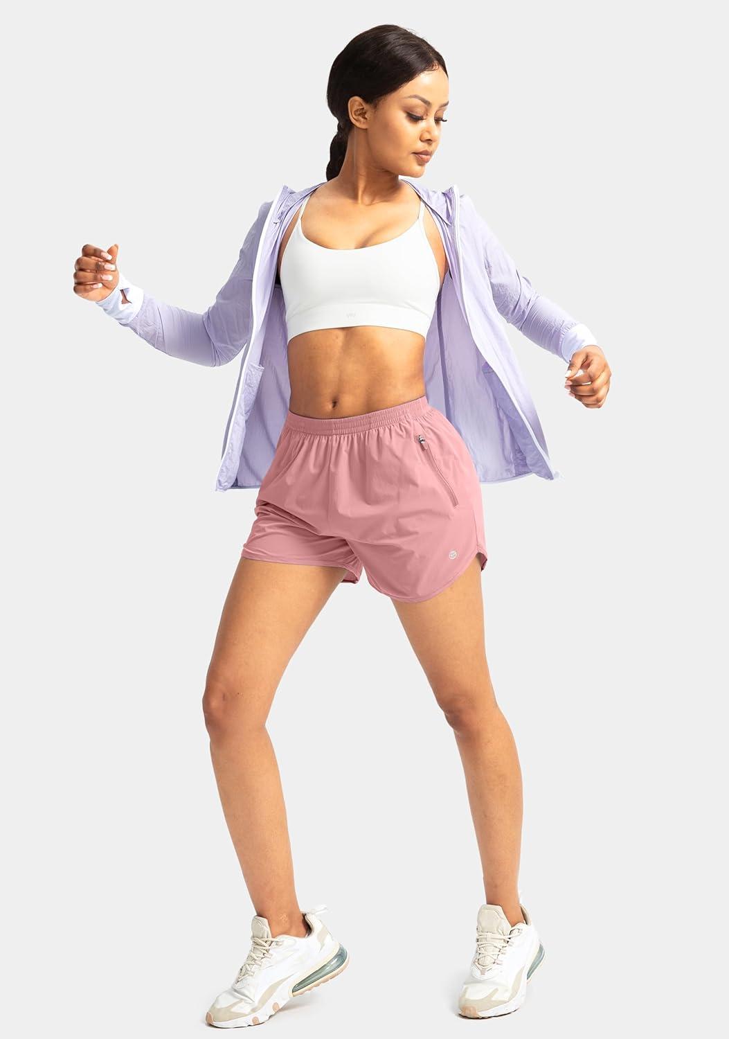 G Gradual Women's Running Shorts with Zipper Pockets Quick Dry Athletic Workout Gym 3" Shorts for Women with Comfy Liner(Pink)