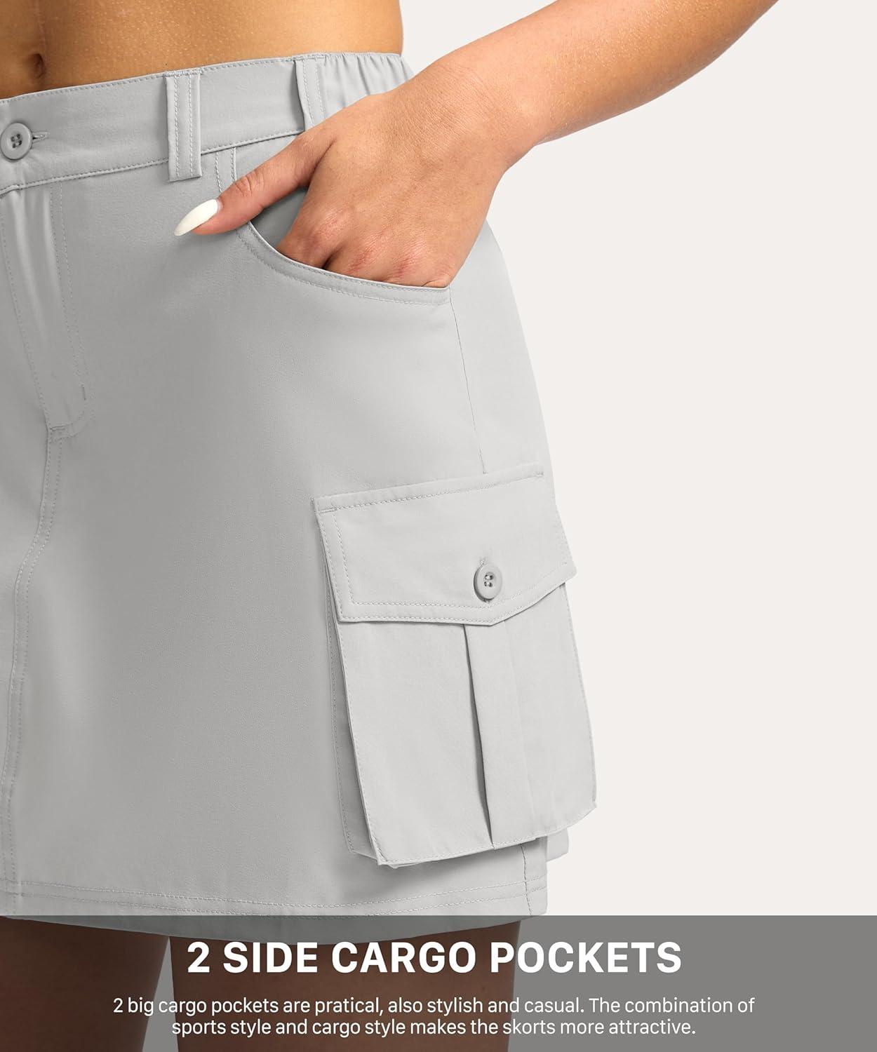 G Gradual Women’s Skort 5 Pockets Cargo Skirt Golf Skirts Skorts for Women Casual Summer Hiking(Bright Grey)