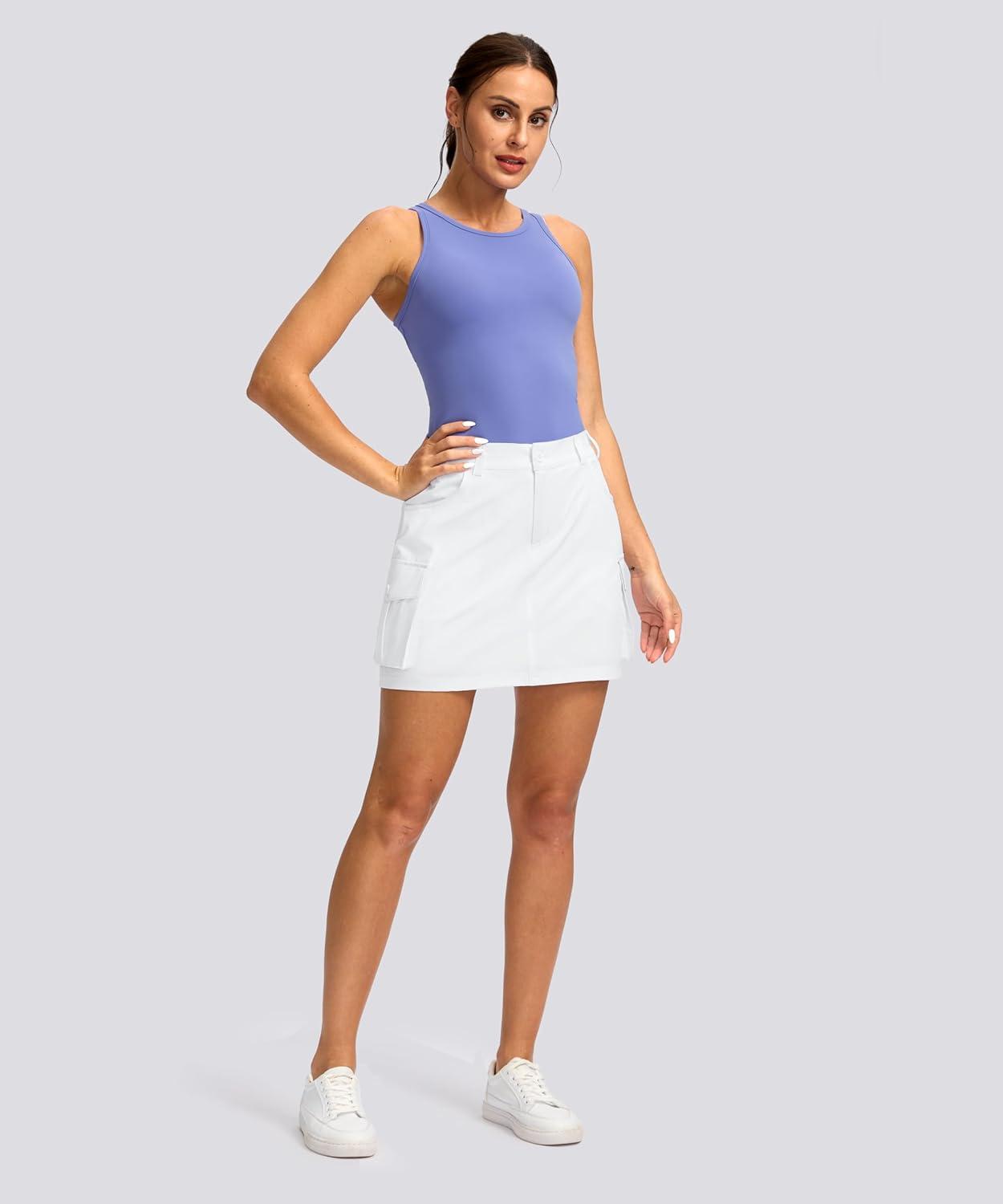 G Gradual Women's Skort 5 Pockets Cargo Skirt Golf Skirts Skorts for Women Casual Summer Hiking(White)