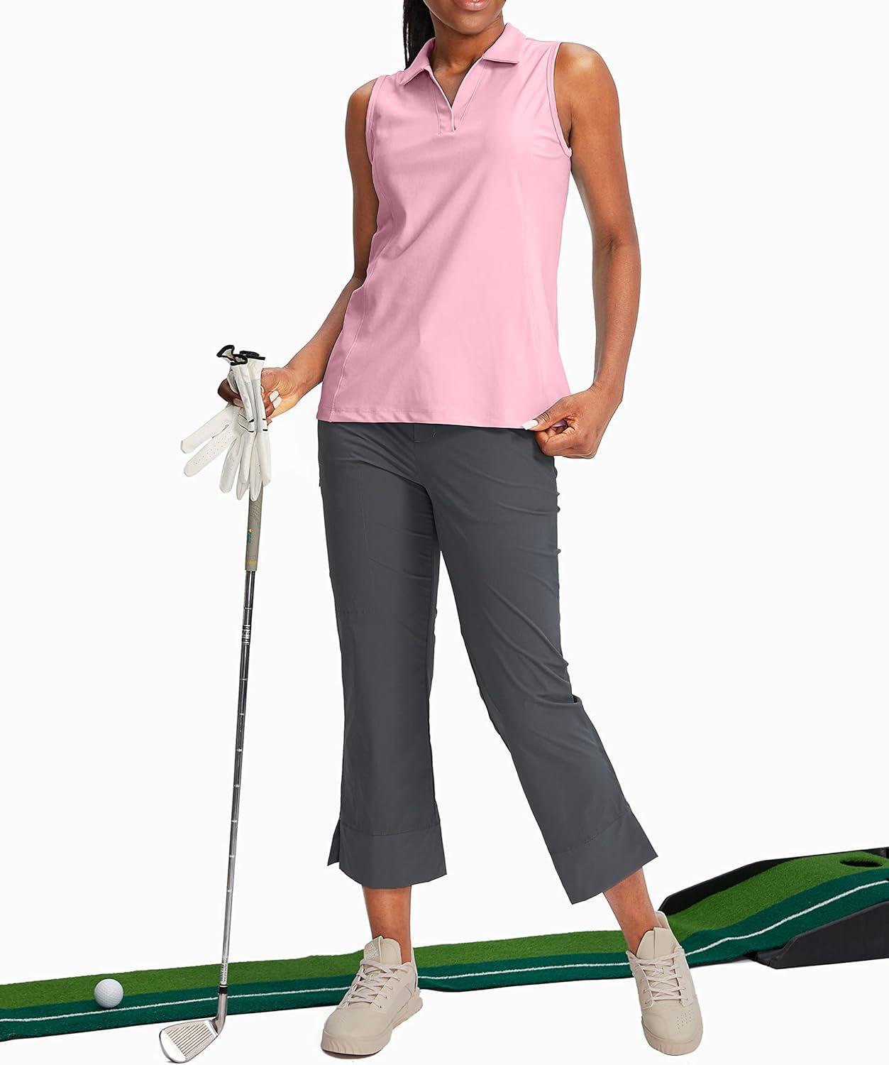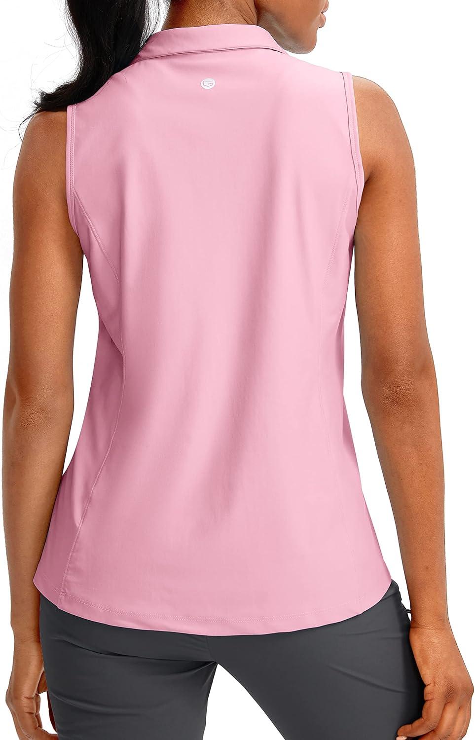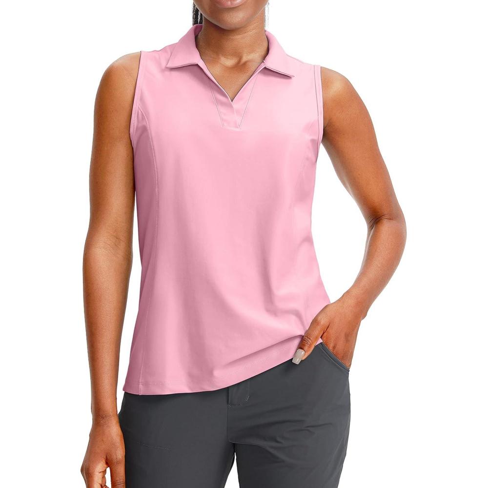 G Gradual Women’s Sleeveless Golf Polo Shirts(Pink)