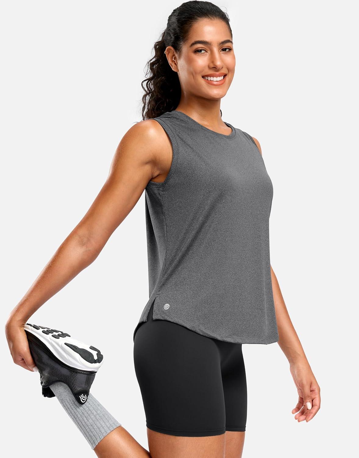 G Gradual Women’s Sleeveless Workout Tops Lightweight High Neck Tennis Yoga Shirts Running Athletic Tank Tops for Women(Charcoal)
