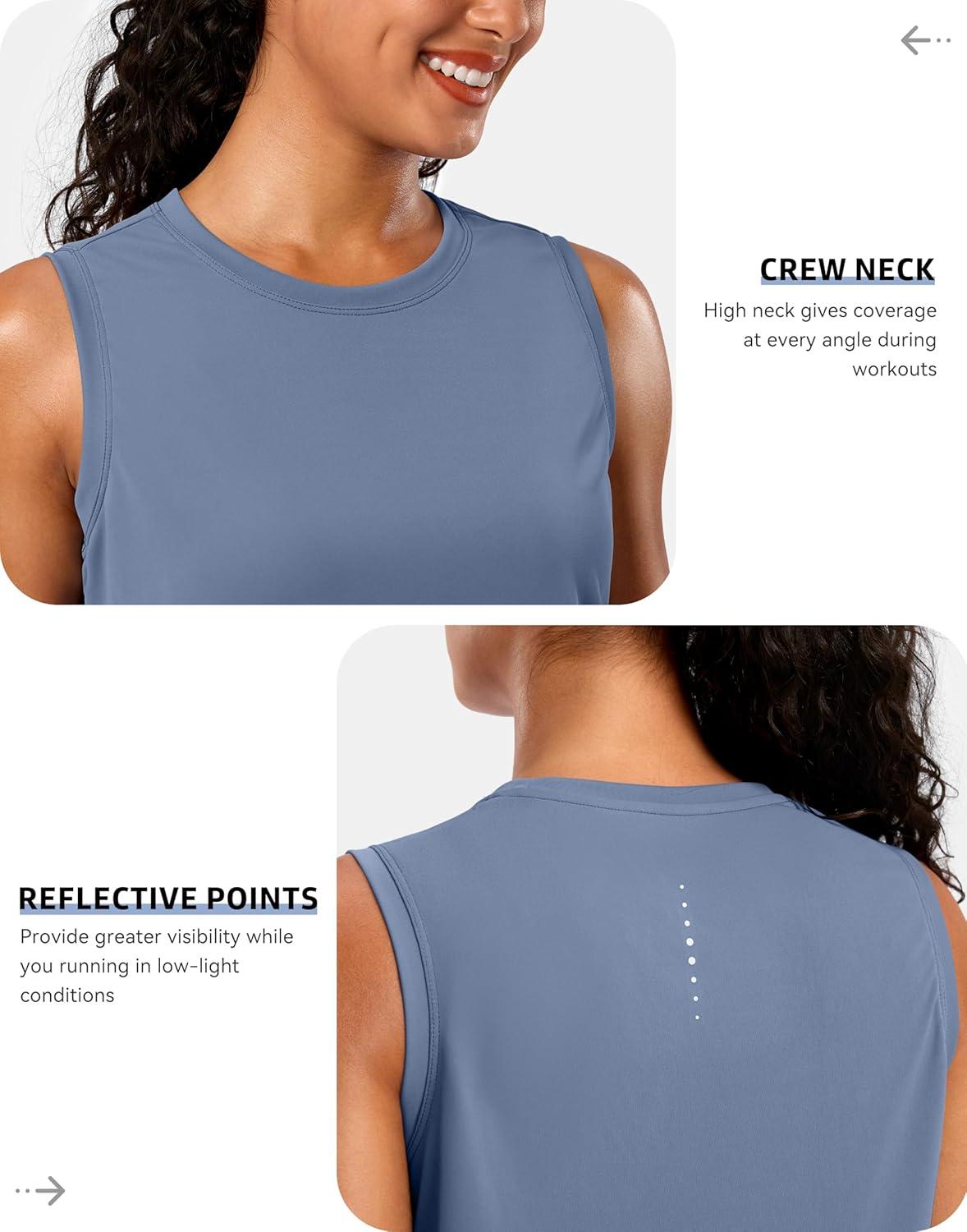 G Gradual Women’s Sleeveless Workout Tops Lightweight High Neck Tennis Yoga Shirts Running Athletic Tank Tops for Women(Dusty Blue)