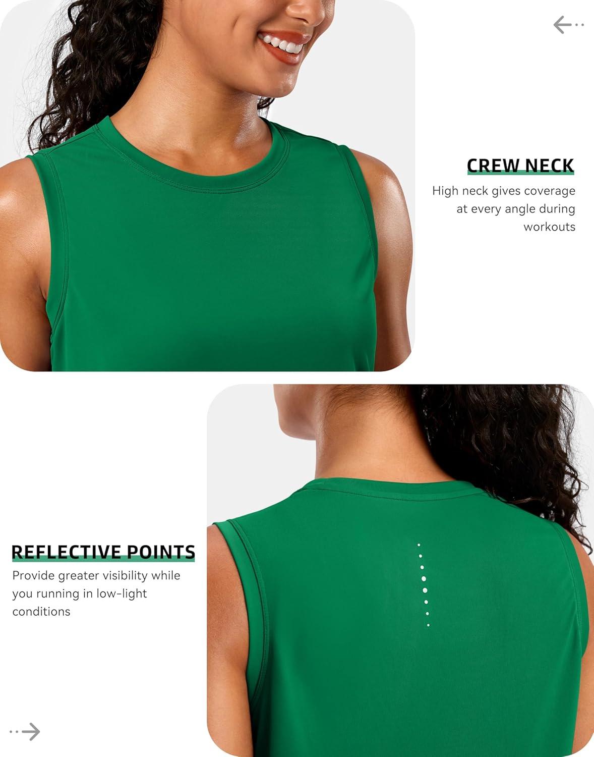 G Gradual Women’s Sleeveless Workout Tops Lightweight High Neck Tennis Yoga Shirts Running Athletic Tank Tops for Women(Green)