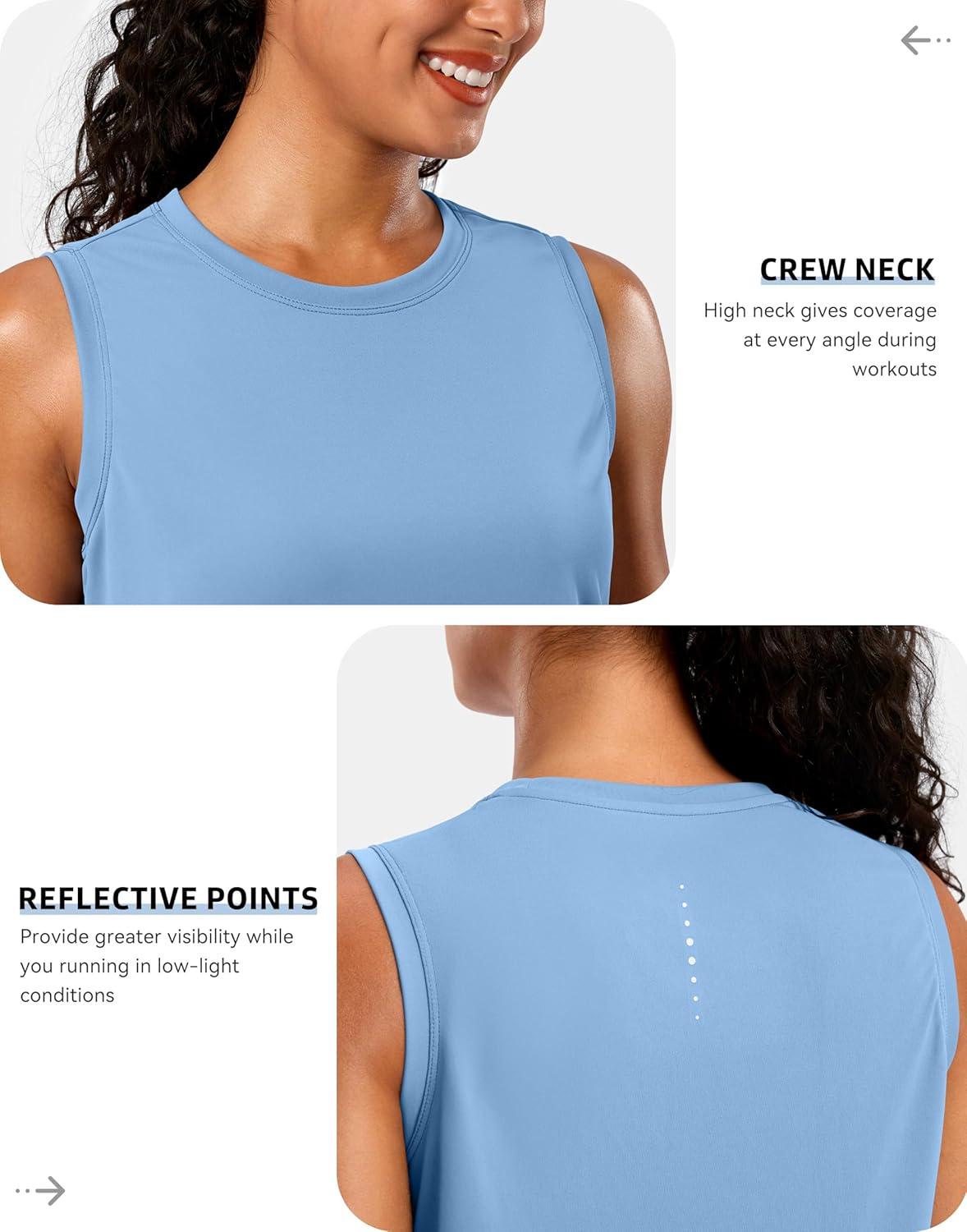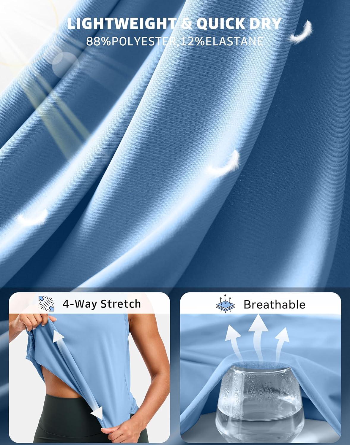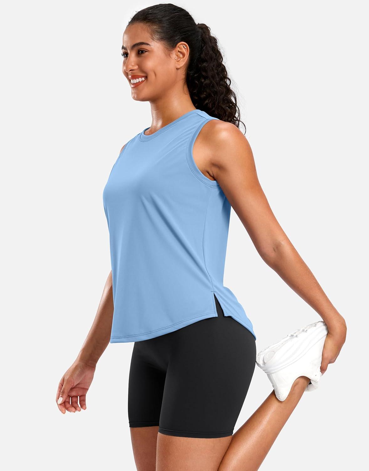 G Gradual Women’s Sleeveless Workout Tops Lightweight High Neck Tennis Yoga Shirts Running Athletic Tank Tops for Women(Haze Blue)