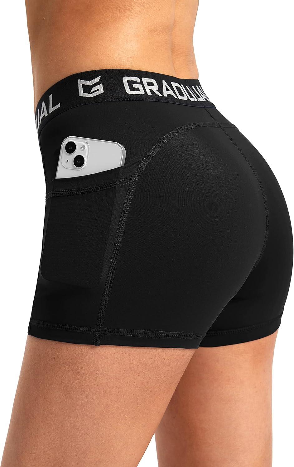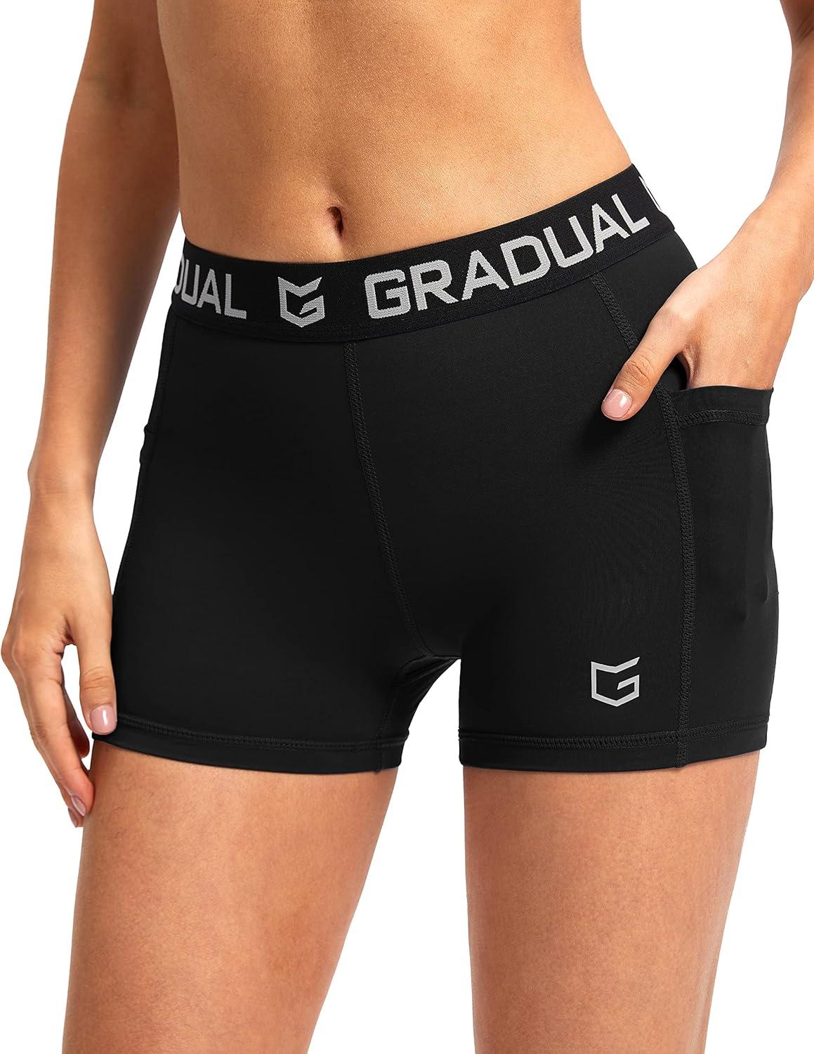 G Gradual Women’s Spandex Compression Volleyball Shorts 3″ /7″ Workout Pro Shorts for Women(3 Pack:black/Navy/Charcoal Pockets)