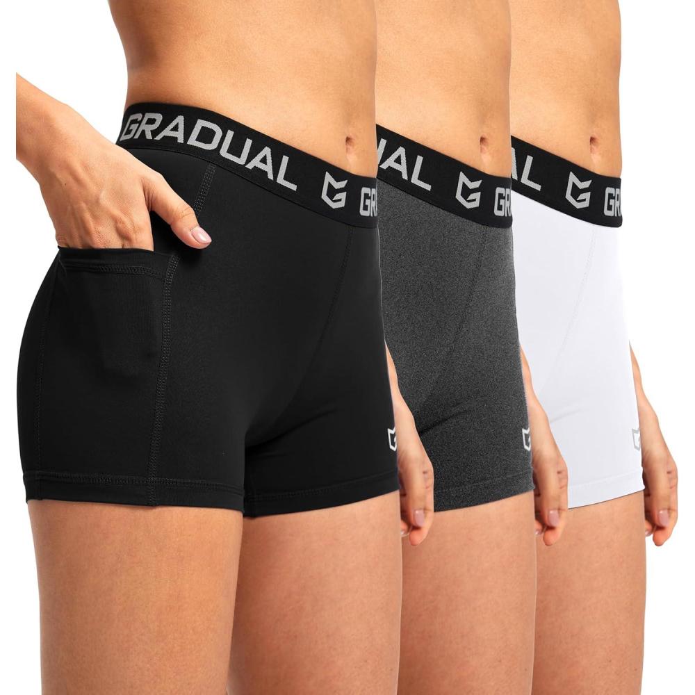 G Gradual Women's Spandex Compression Volleyball Shorts 3" /7" Workout Pro Shorts for Women(3 Pack:black/White/Charcoal Pockets)
