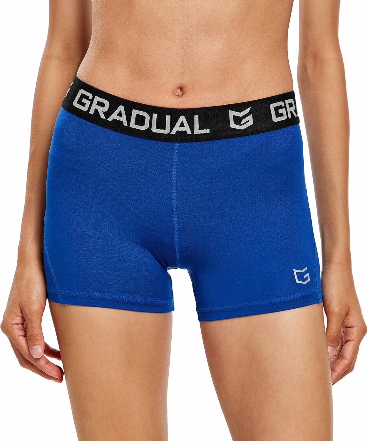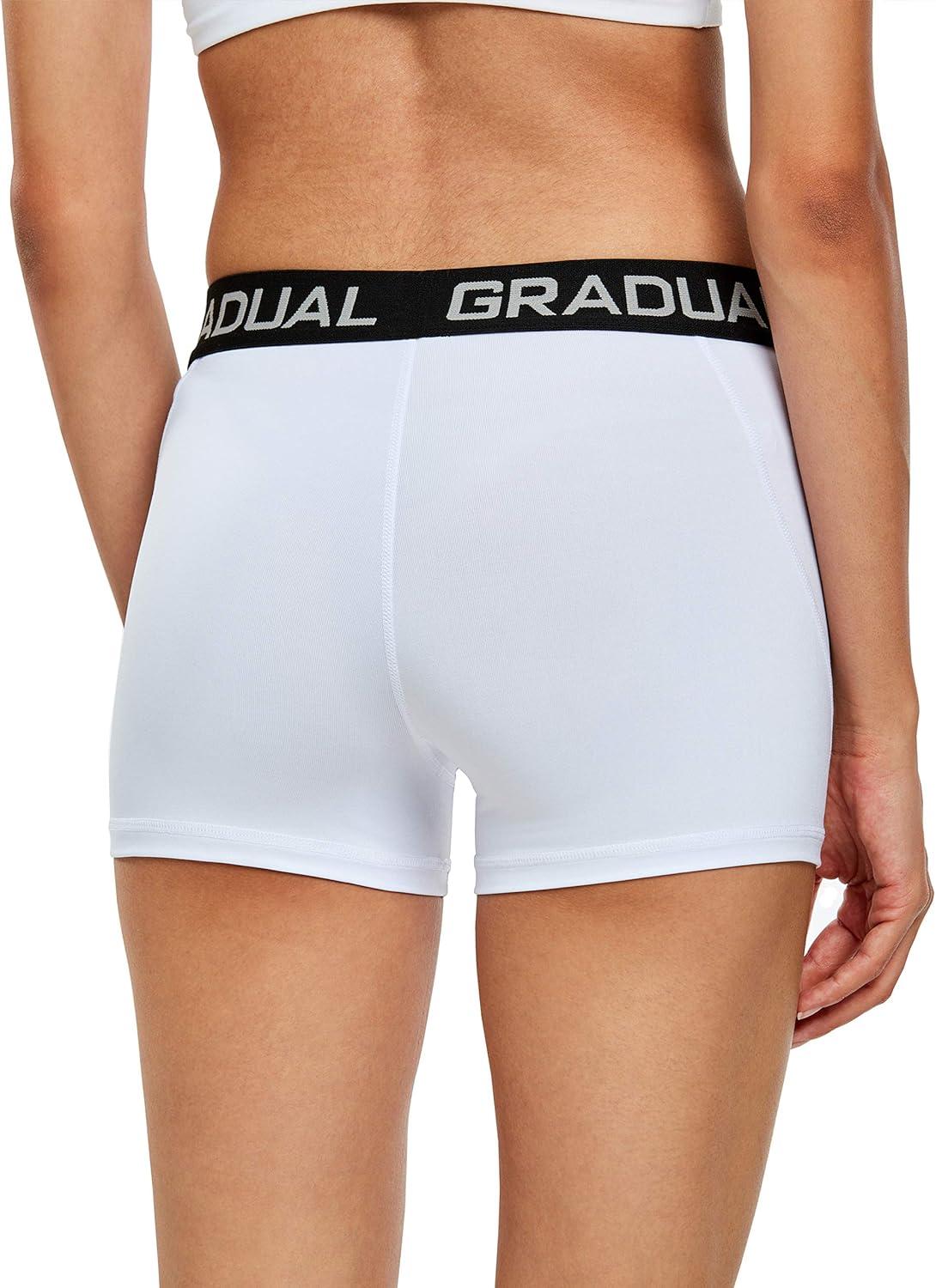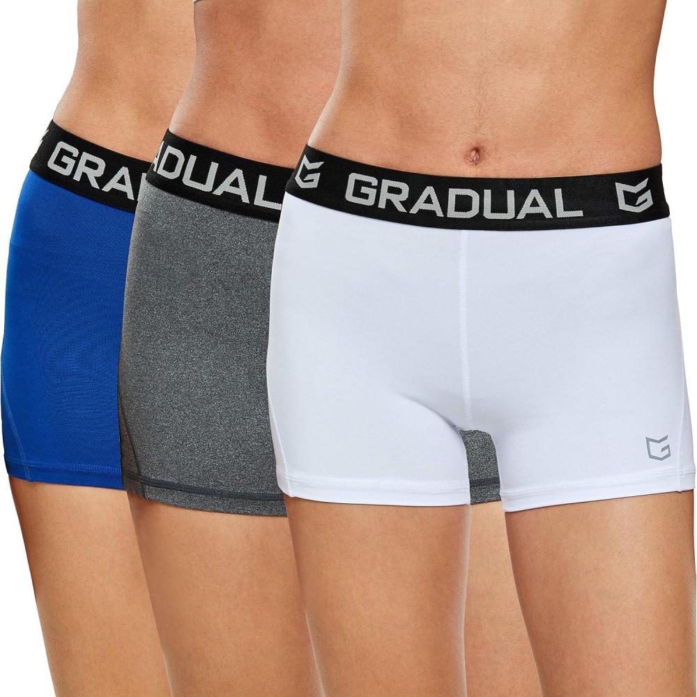 G Gradual Women’s Spandex Compression Volleyball Shorts 3″ /7″ Workout Pro Shorts for Women(3 Pack:white/Blue/Gray)