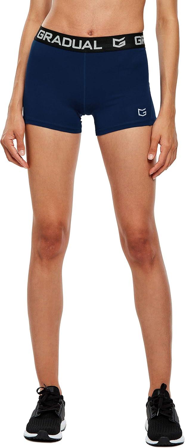 G Gradual Women’s Spandex Compression Volleyball Shorts 3″ /7″ Workout Pro Shorts for Women(Navy Blue)
