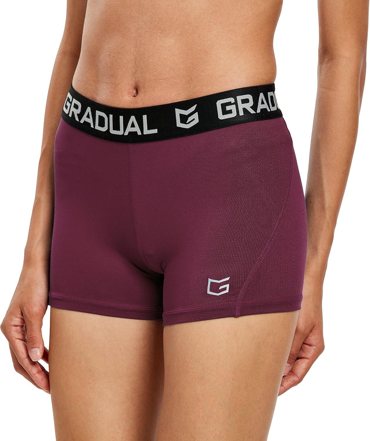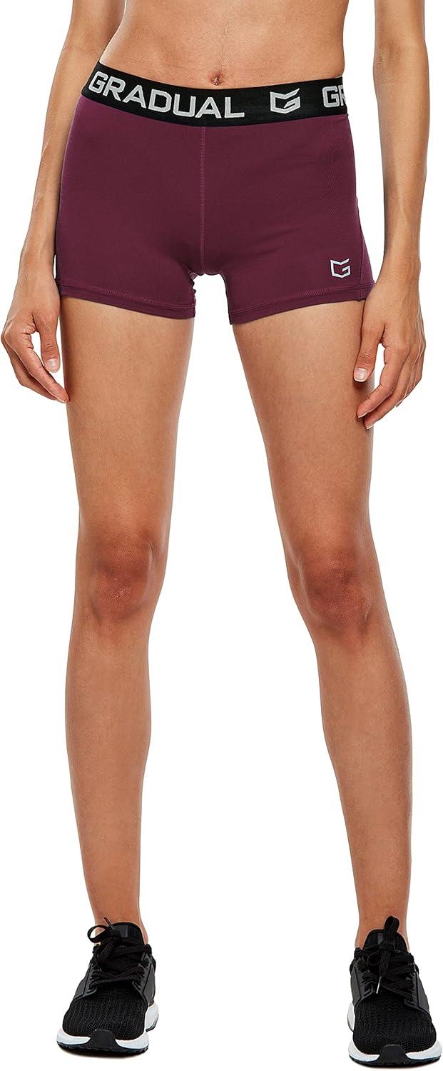 G Gradual Women's Spandex Compression Volleyball Shorts 3" /7" Workout Pro Shorts for Women(Wine Red)