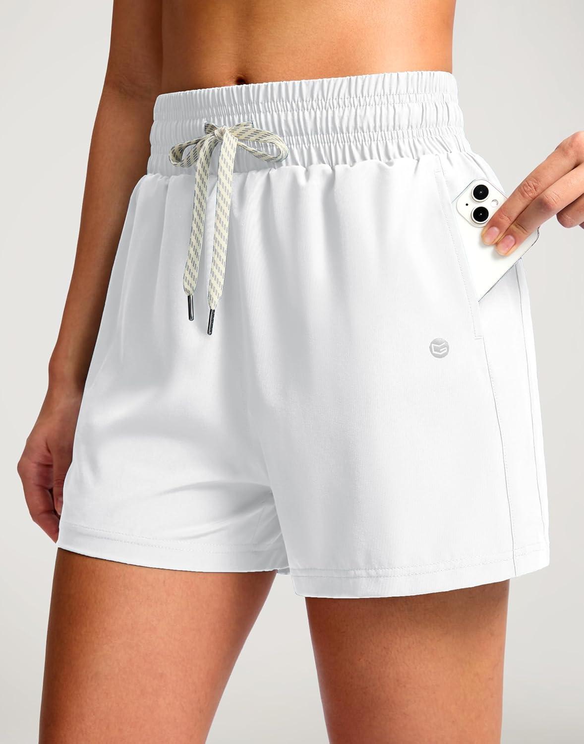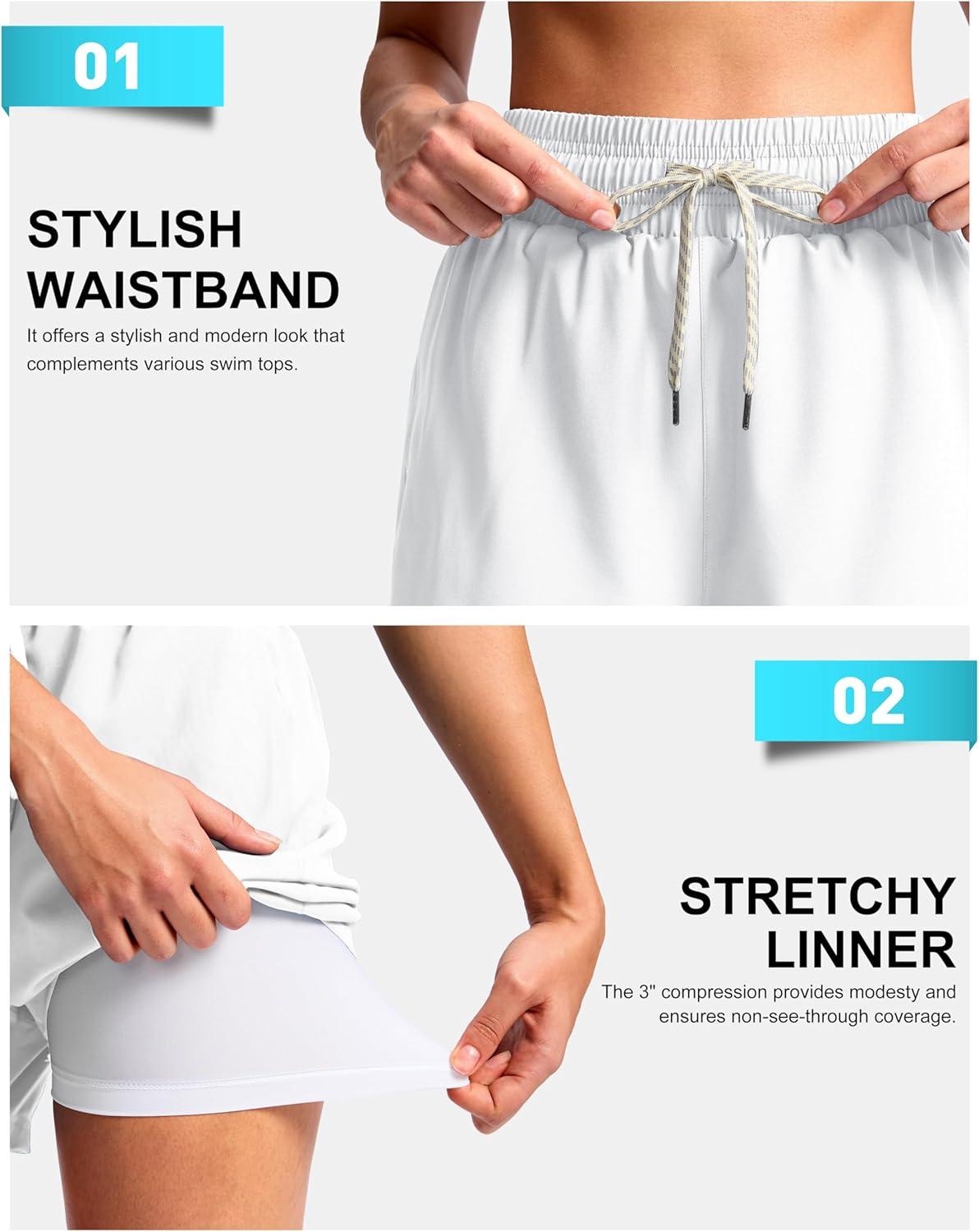 G Gradual Women’s Swim Shorts 4″ Quick Dry Board Shorts with Boxer Liner Deep Pockets Trunks for Water Fun, Beach, Surf, Pool(White)