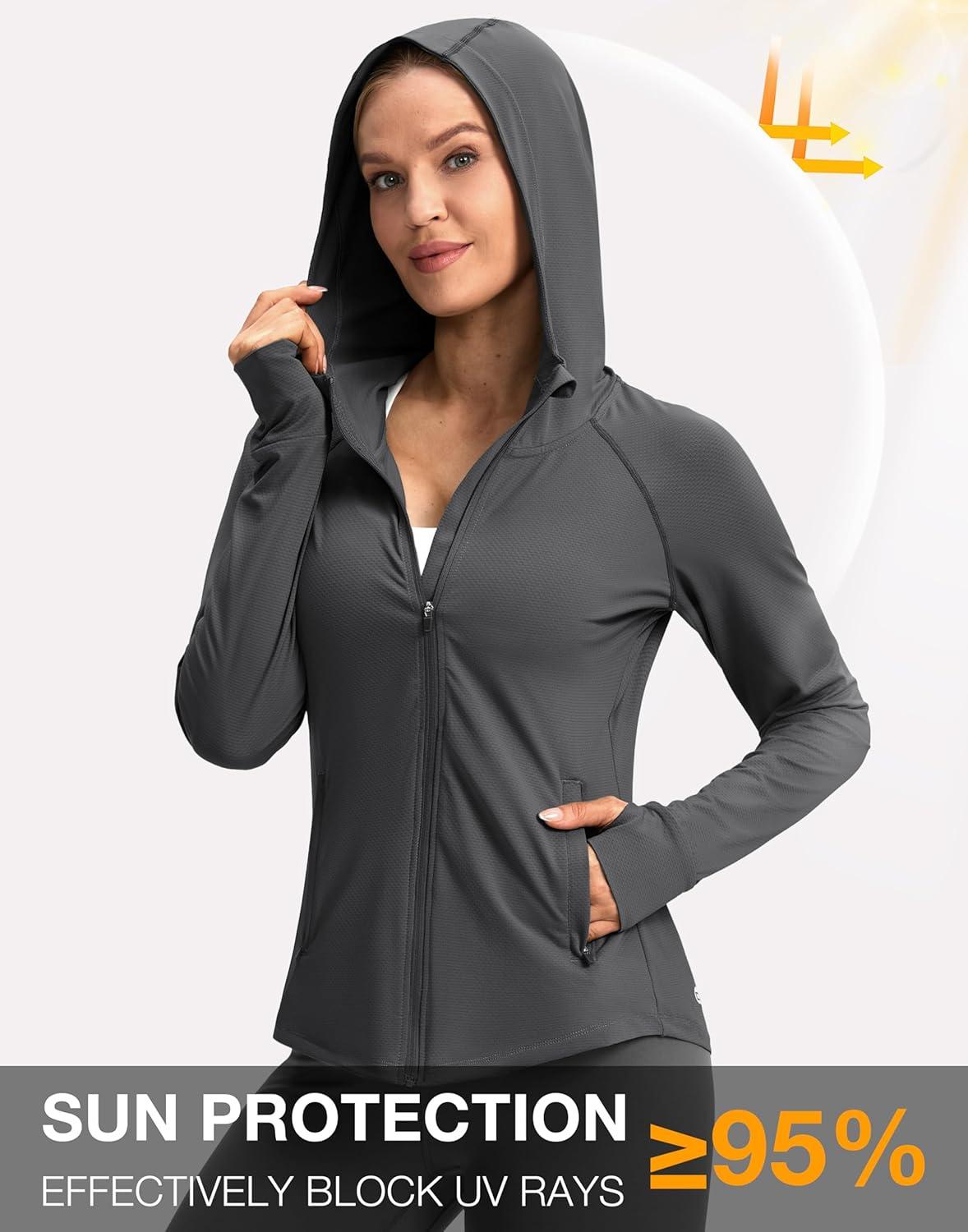 G Gradual Women’s UPF 50+ Sun Protection Hoodie Jacket Lightweight Zip Up Jackets Long Sleeve Shirts for Women Hiking Outdoor(Dark Grey)