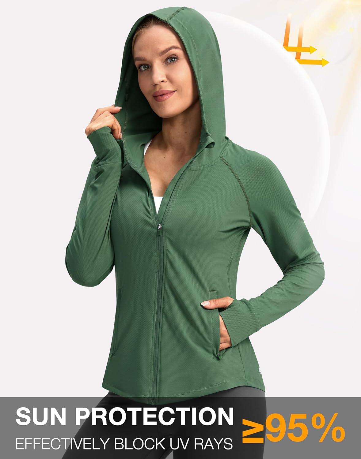G Gradual Women's UPF 50+ Sun Protection Hoodie Jacket Lightweight Zip Up Jackets Long Sleeve Shirts for Women Hiking Outdoor(Green)
