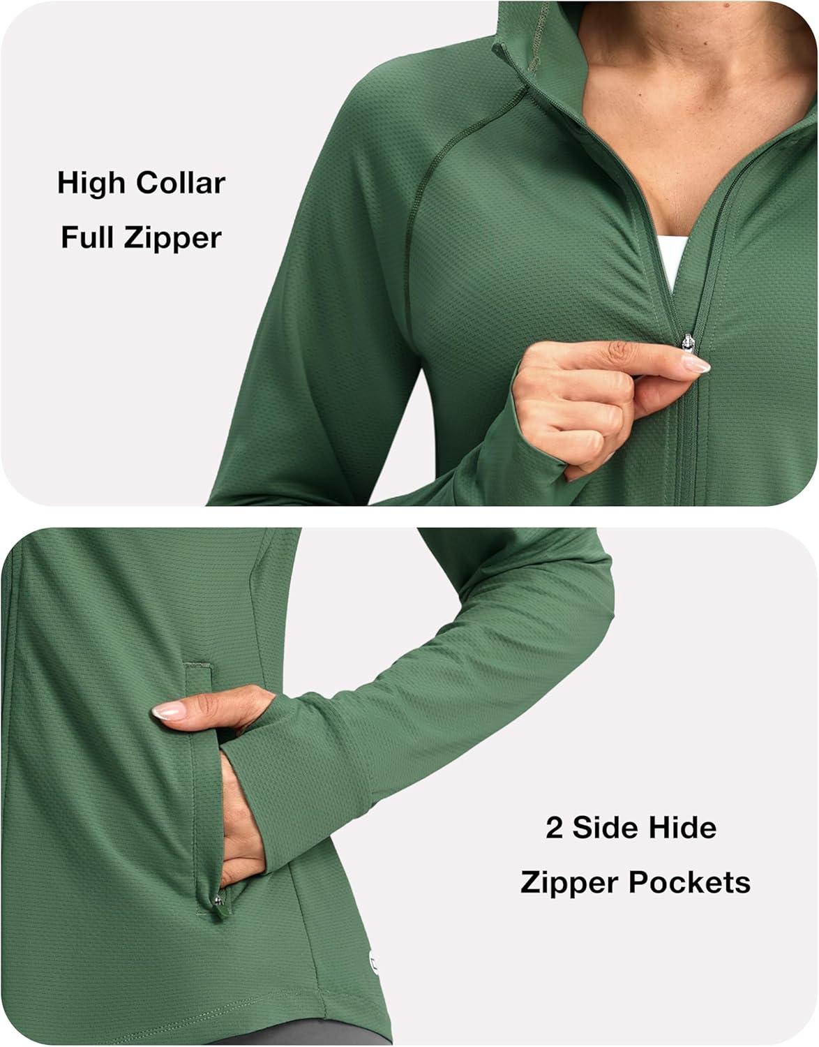 G Gradual Women’s UPF 50+ Sun Protection Hoodie Jacket Lightweight Zip Up Jackets Long Sleeve Shirts for Women Hiking Outdoor(Green)