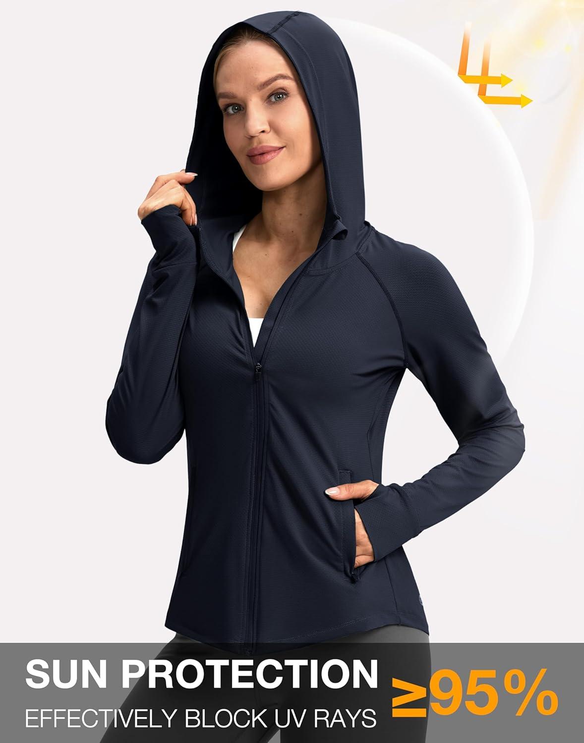 G Gradual Women’s UPF 50+ Sun Protection Hoodie Jacket Lightweight Zip Up Jackets Long Sleeve Shirts for Women Hiking Outdoor(Navy)