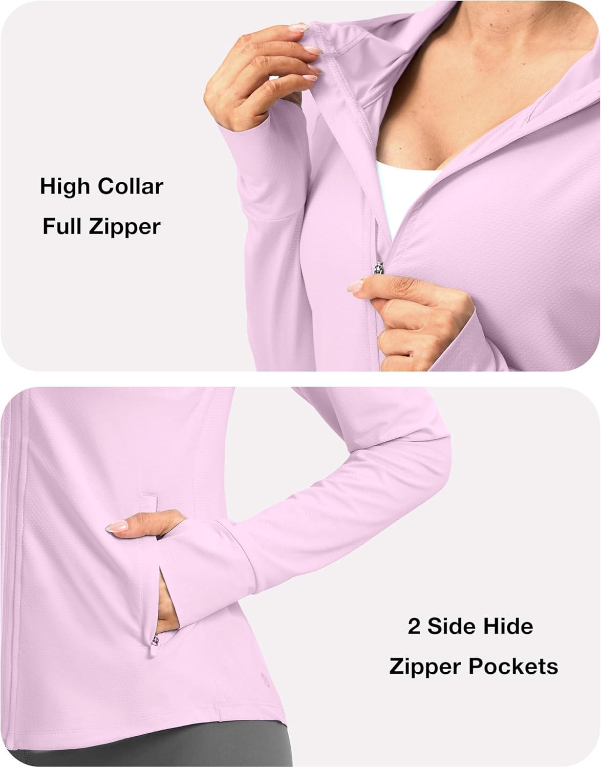 G Gradual Women’s UPF 50+ Sun Protection Hoodie Jacket Lightweight Zip Up Jackets Long Sleeve Shirts for Women Hiking Outdoor(Pink)