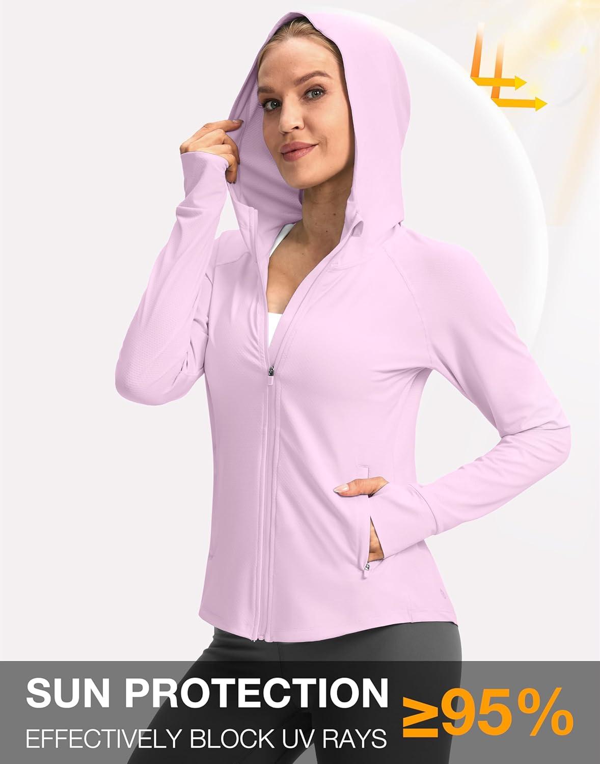 G Gradual Women's UPF 50+ Sun Protection Hoodie Jacket Lightweight Zip Up Jackets Long Sleeve Shirts for Women Hiking Outdoor(Pink)