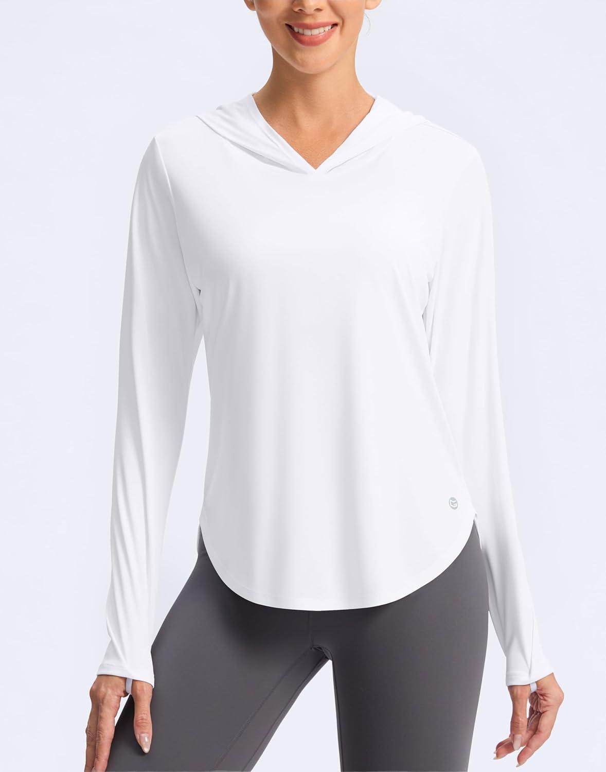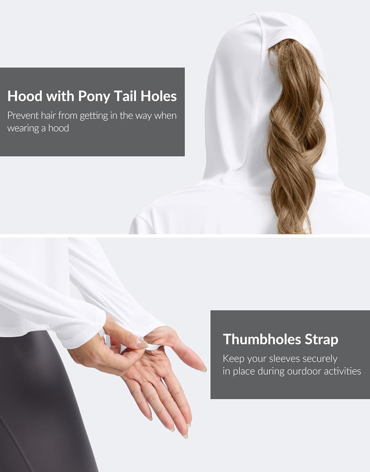 G Gradual Women’s UPF 50+ Sun Shirt with Hoodie Long Sleeve UV Protection Shirts Lightweight Hiking Fishing Shirts for Women(A-white)