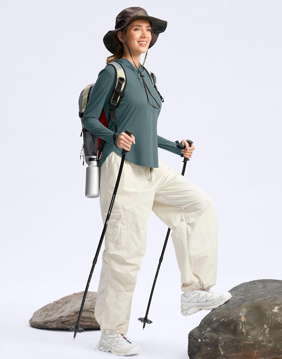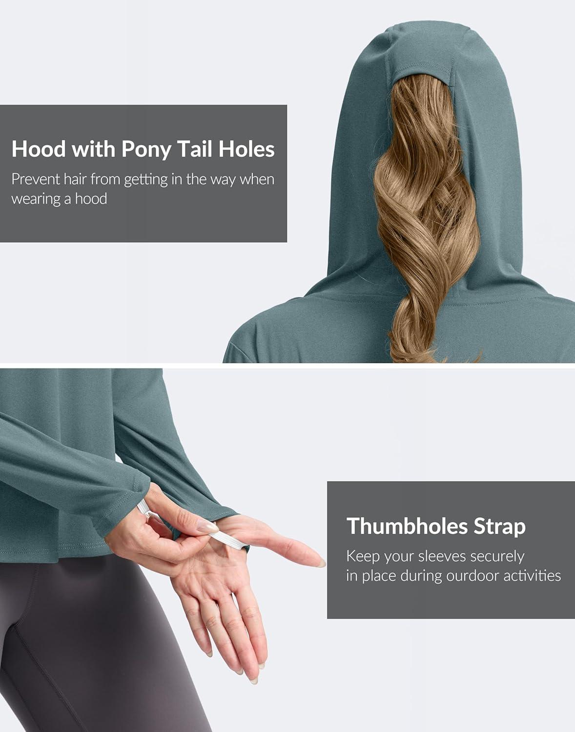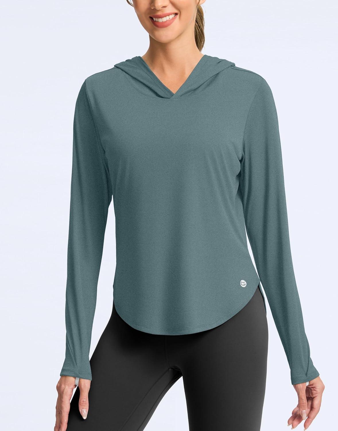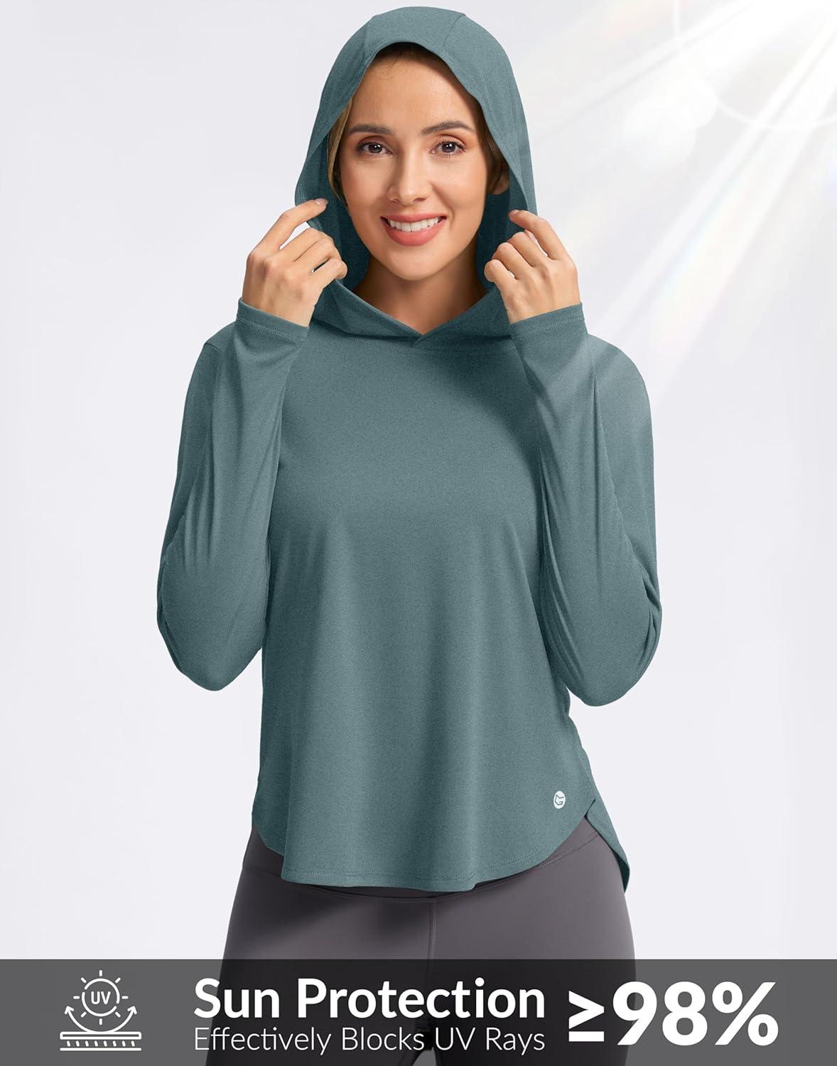 G Gradual Women’s UPF 50+ Sun Shirt with Hoodie Long Sleeve UV Protection Shirts Lightweight Hiking Fishing Shirts for Women(Heather Blue)