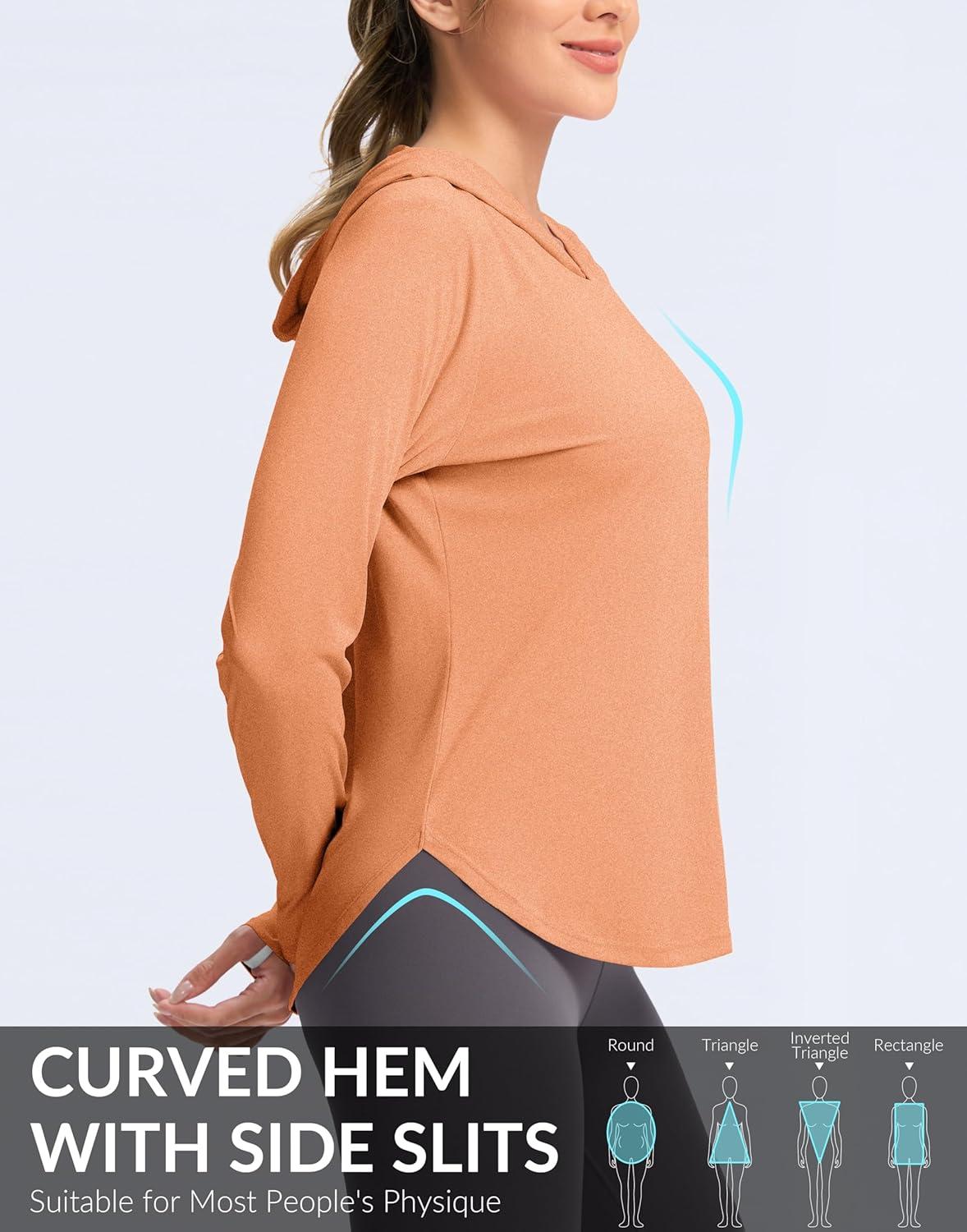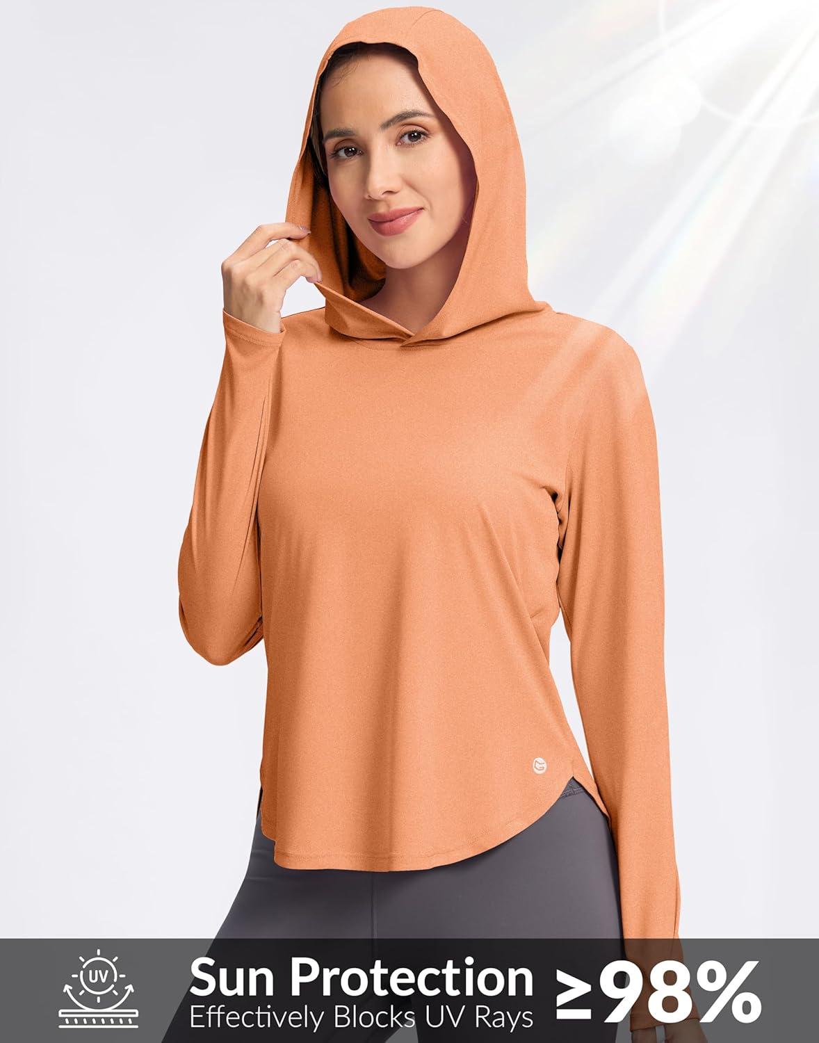 G Gradual Women’s UPF 50+ Sun Shirt with Hoodie Long Sleeve UV Protection Shirts Lightweight Hiking Fishing Shirts for Women(Heather Orange)