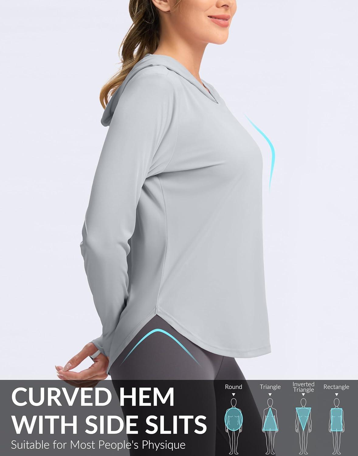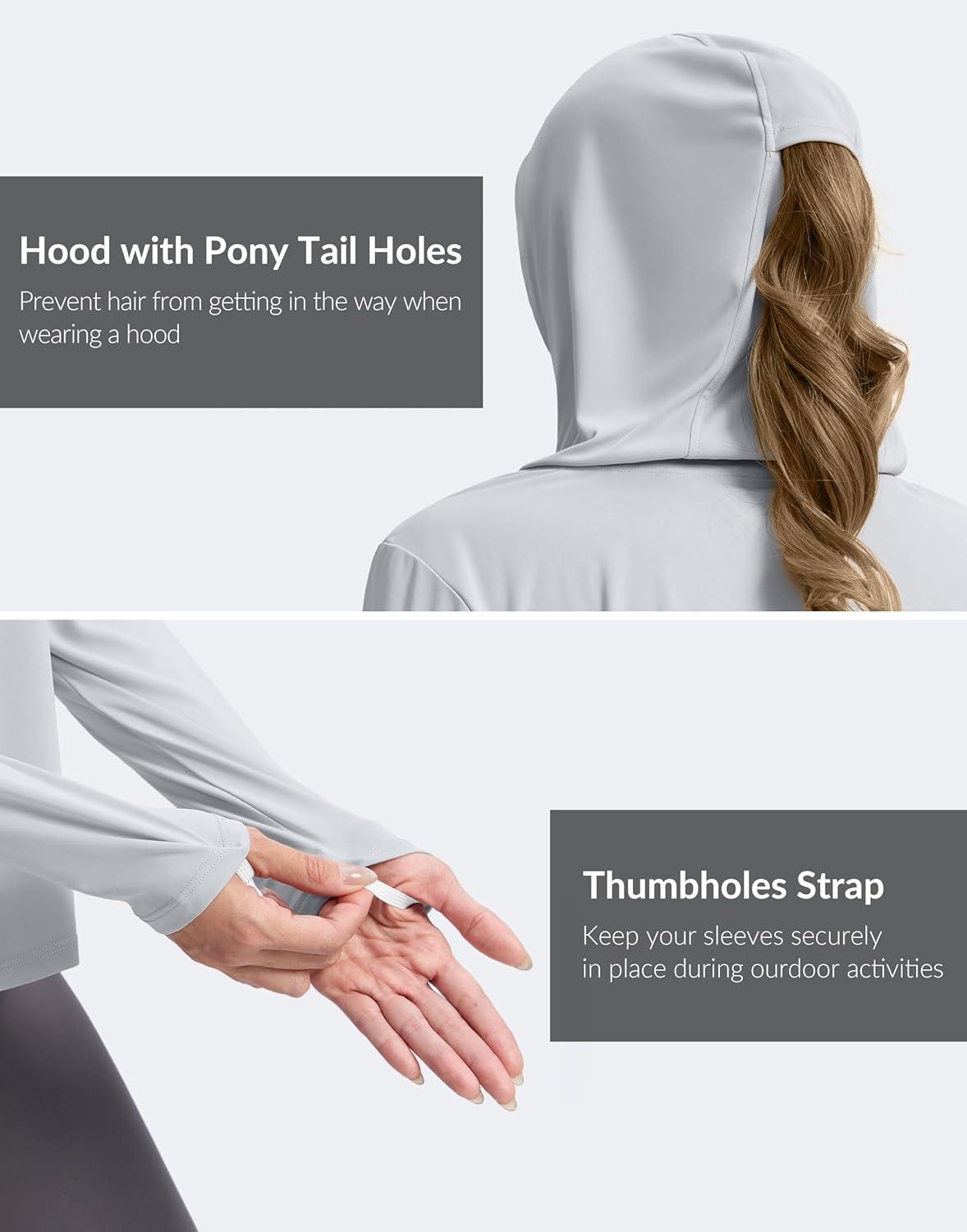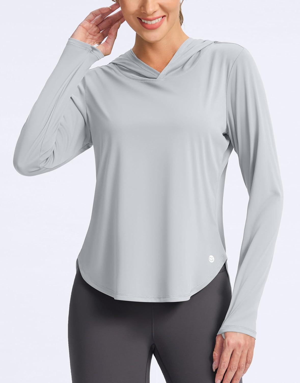G Gradual Women’s UPF 50+ Sun Shirt with Hoodie Long Sleeve UV Protection Shirts Lightweight Hiking Fishing Shirts for Women(Light Grey)