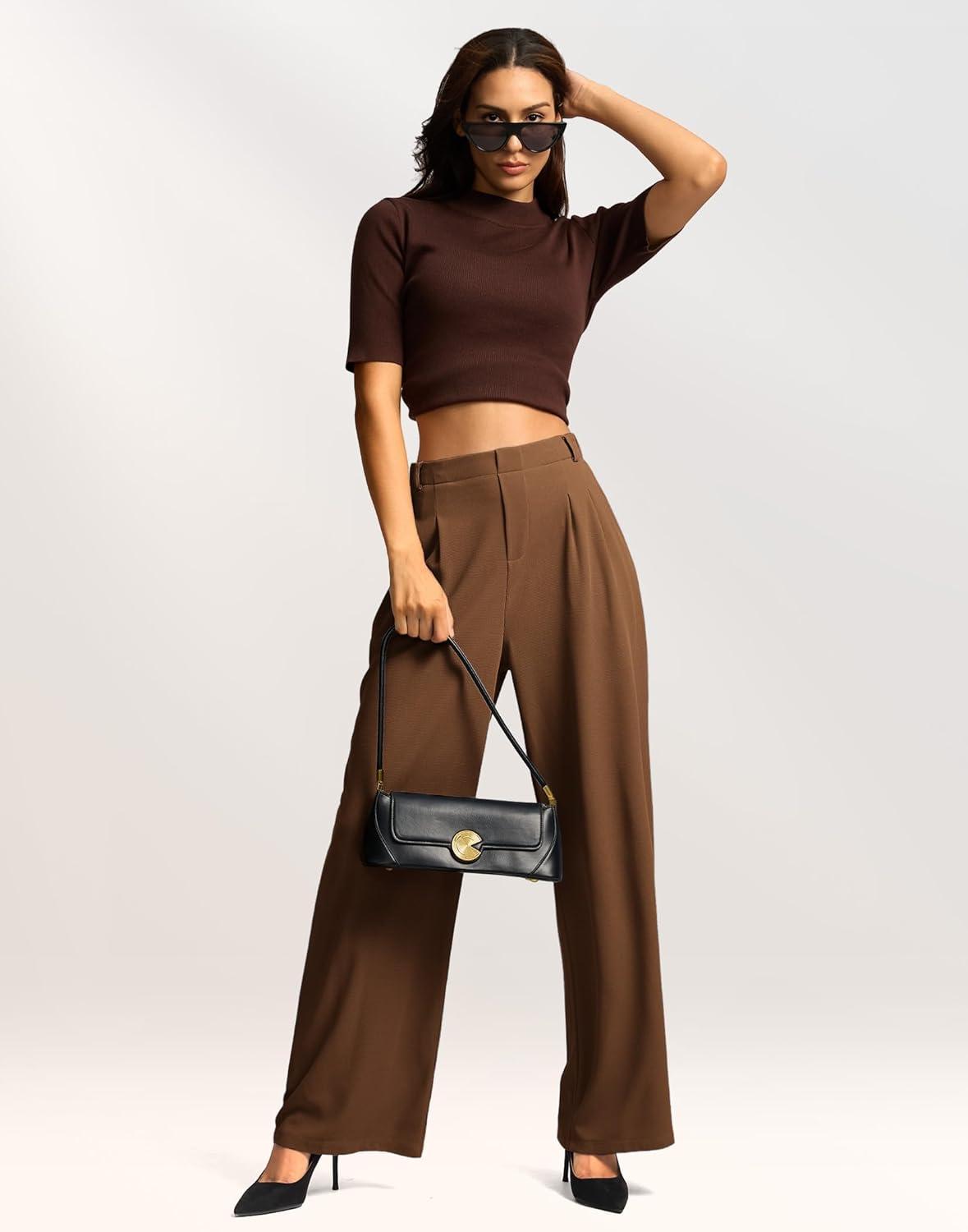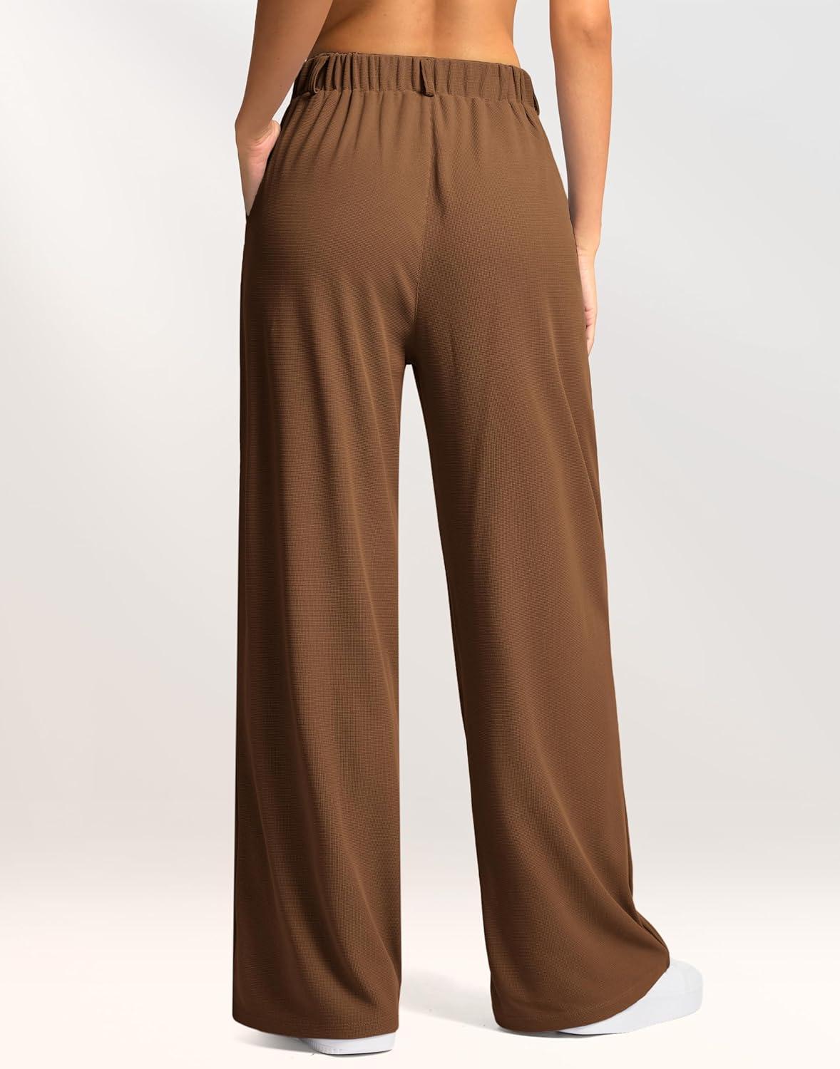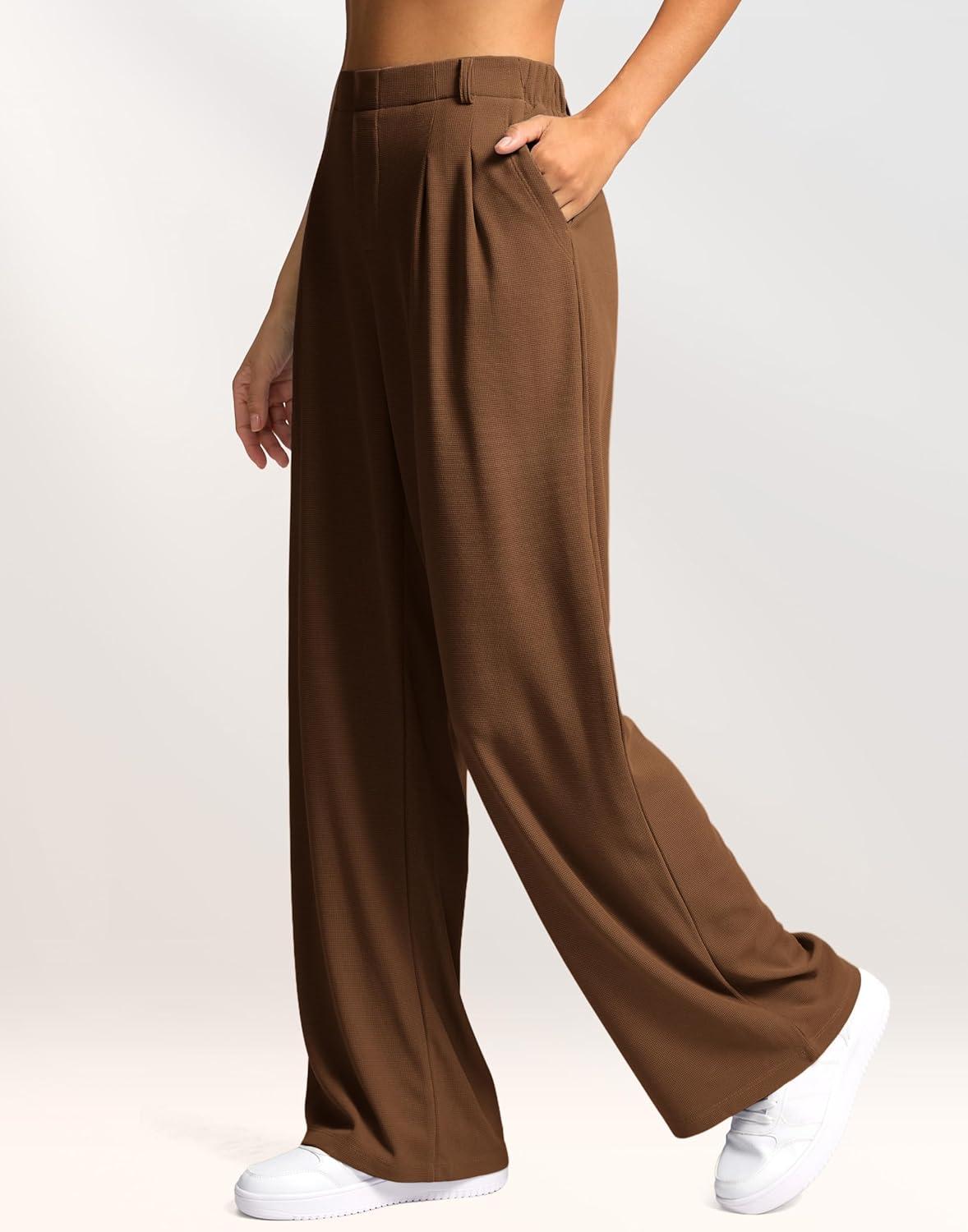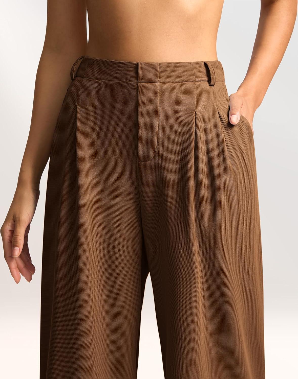 G Gradual Women's Wide Leg Pants High Waisted Waffle Knit Business Casual Slacks 2025 Office Dress Trousers Pants for WomenDress Trousers Pants for Women(Chocolate Brown,XL)